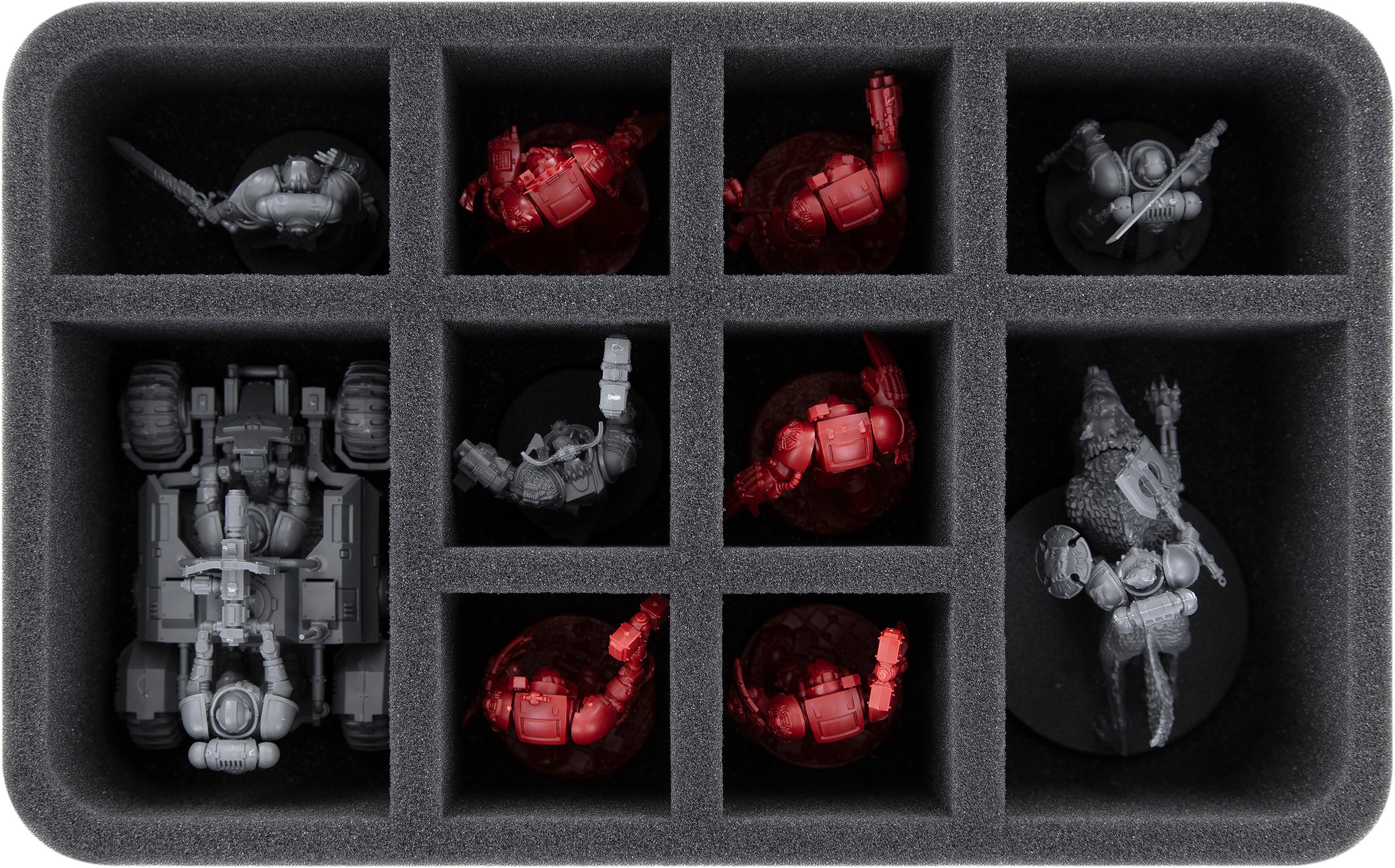 - 1 Half-Size-Schaumstoffeinlage mit 10 Fächern für z. B. zusätzliche Invader-Quads der Primaris, Terminators, Primaris Space Marines oder ähnliche Modelle (HSMFAH070BO)