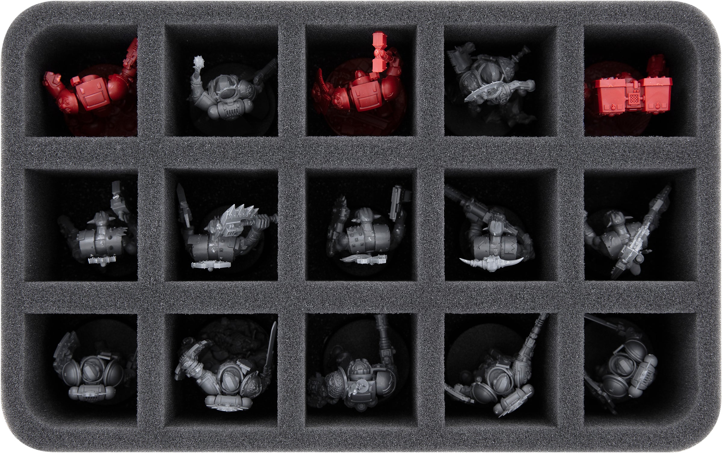 - 1 Half-Size Schaumstoffeinlage mit 15 Fächern für Intercessors, Hellblaster und Bladeguard Veterans (HS070A012)