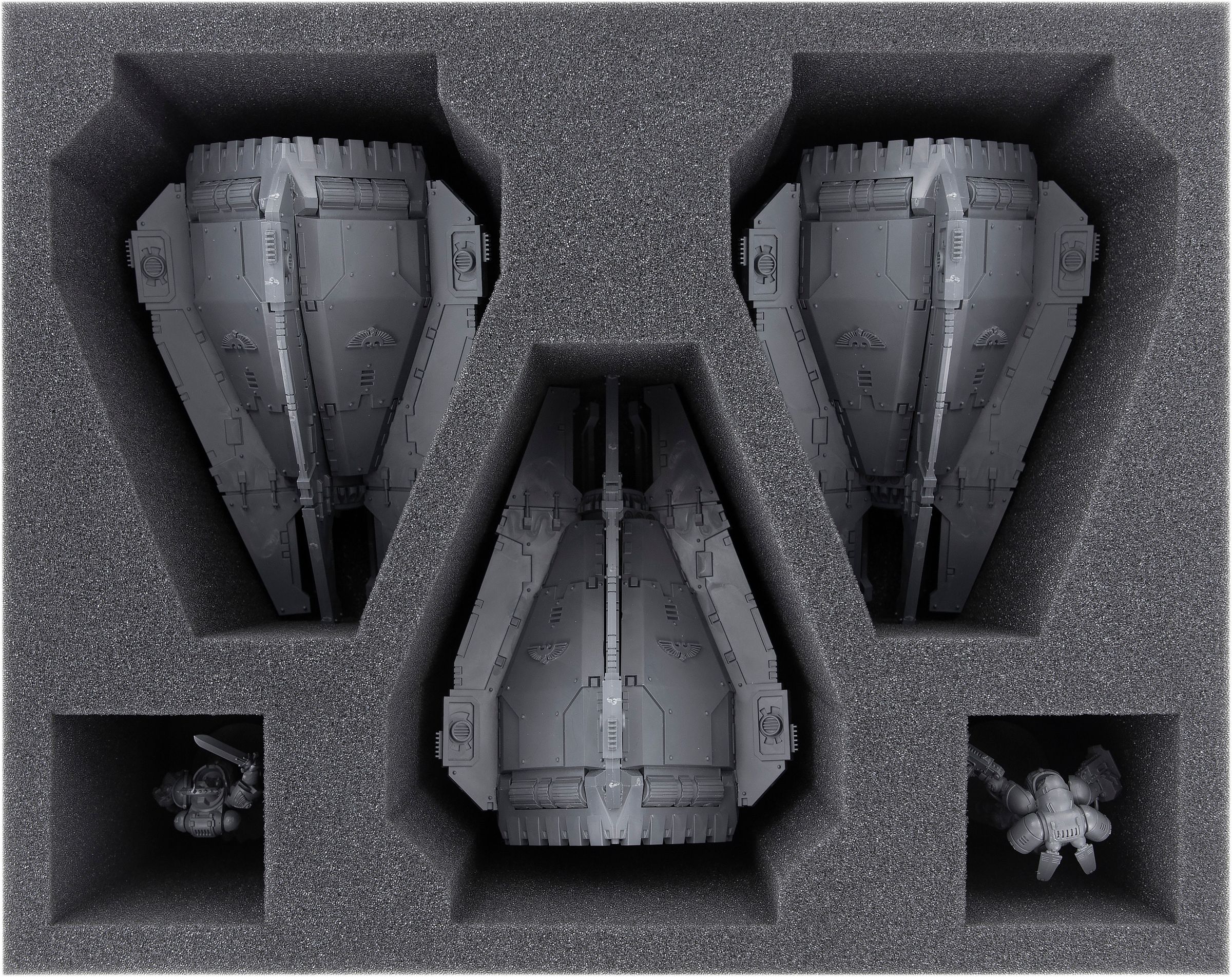 Ob du die Kapsel für deine Adeptus Astartes oder die Chaos Space Marines nutzt, bleibt dir überlassen. Wir kümmern uns mit dieser maßgeschneiderten Schaumstoffeinlage nur darum, dass deine Landungskapseln unversehrt am Spieltisch ankommen.