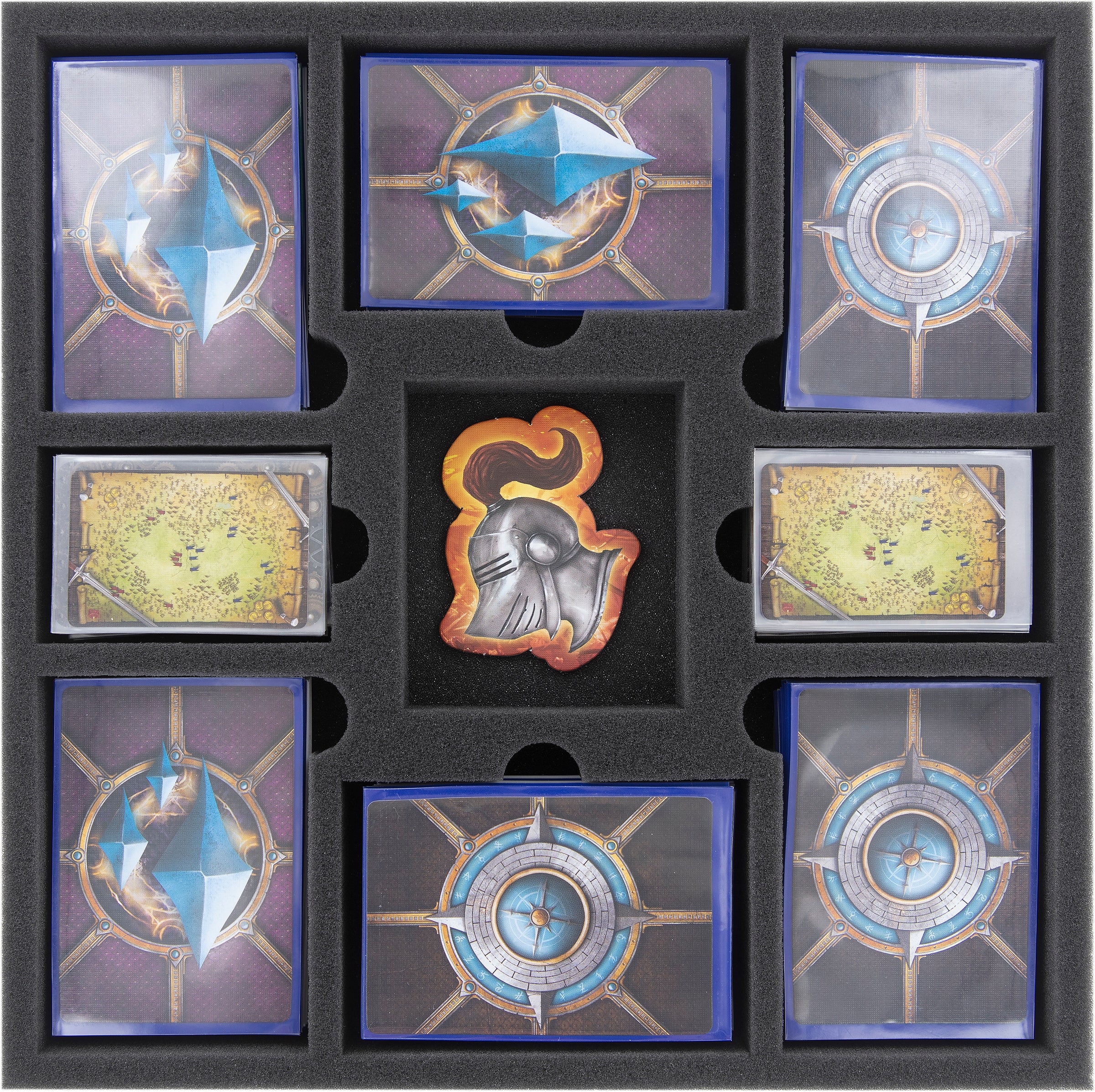 Dir ist es zu mühselig, deine Spielfiguren, Tiles, Token und Würfel vor jedem Spiel erneut zu sortieren, nur um dann festzustellen, dass dir ein Marker fehlt oder eine Miniatur ihren Kopf vermisst? Bevor du noch den Kopf verlierst, hilft dir diese Feldherr Lagerbox inklusive Schaumstoffeinlage dabei, deine Spielkomponenten ordentlich und sicher zu verstauen.