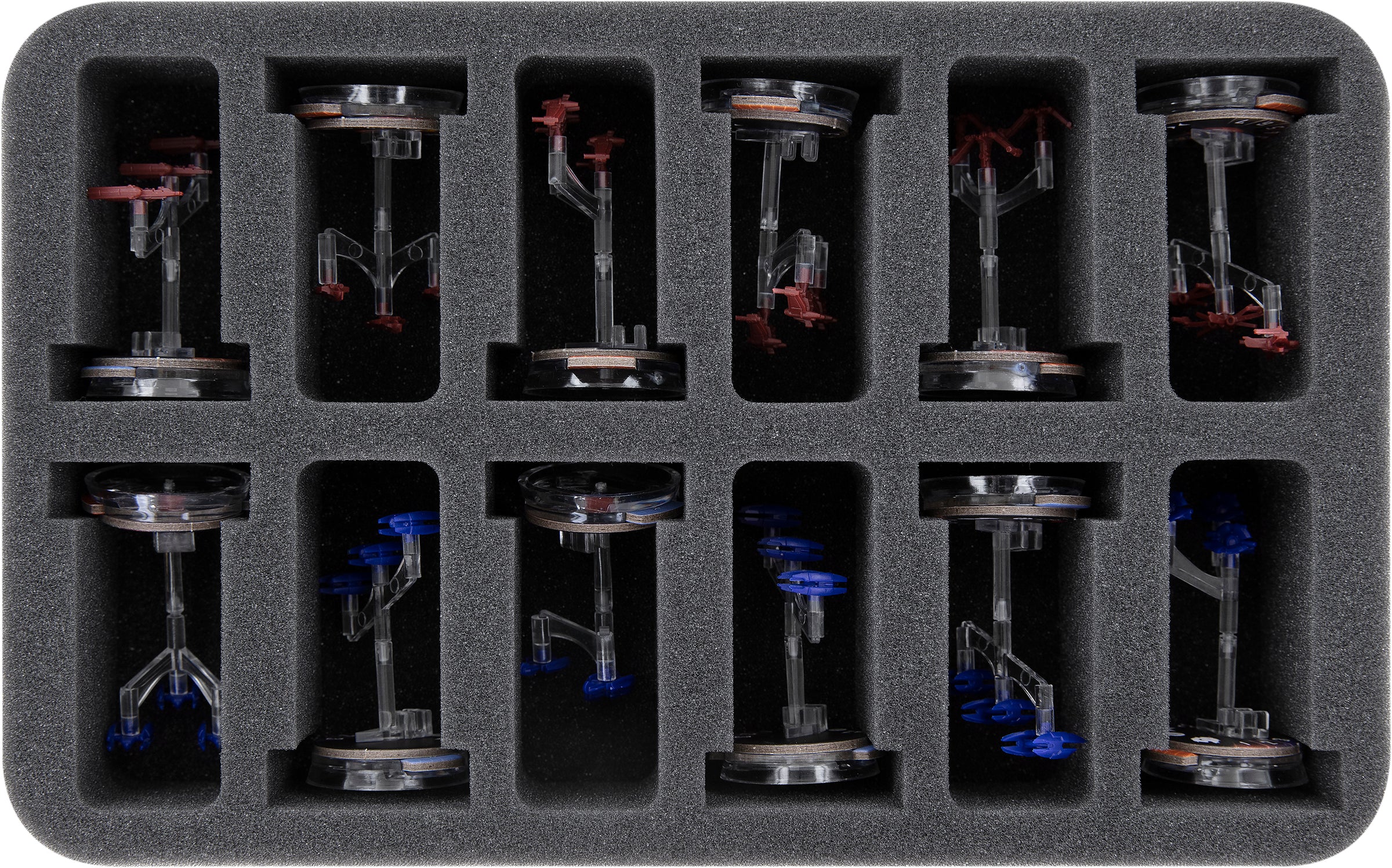 Abschließend sorgt der mitgelieferte Schaumstoffdeckel dafür, dass deine Flotte rundum sicher verpackt ist und den Transport zum Spieltisch unbeschadet übersteht.