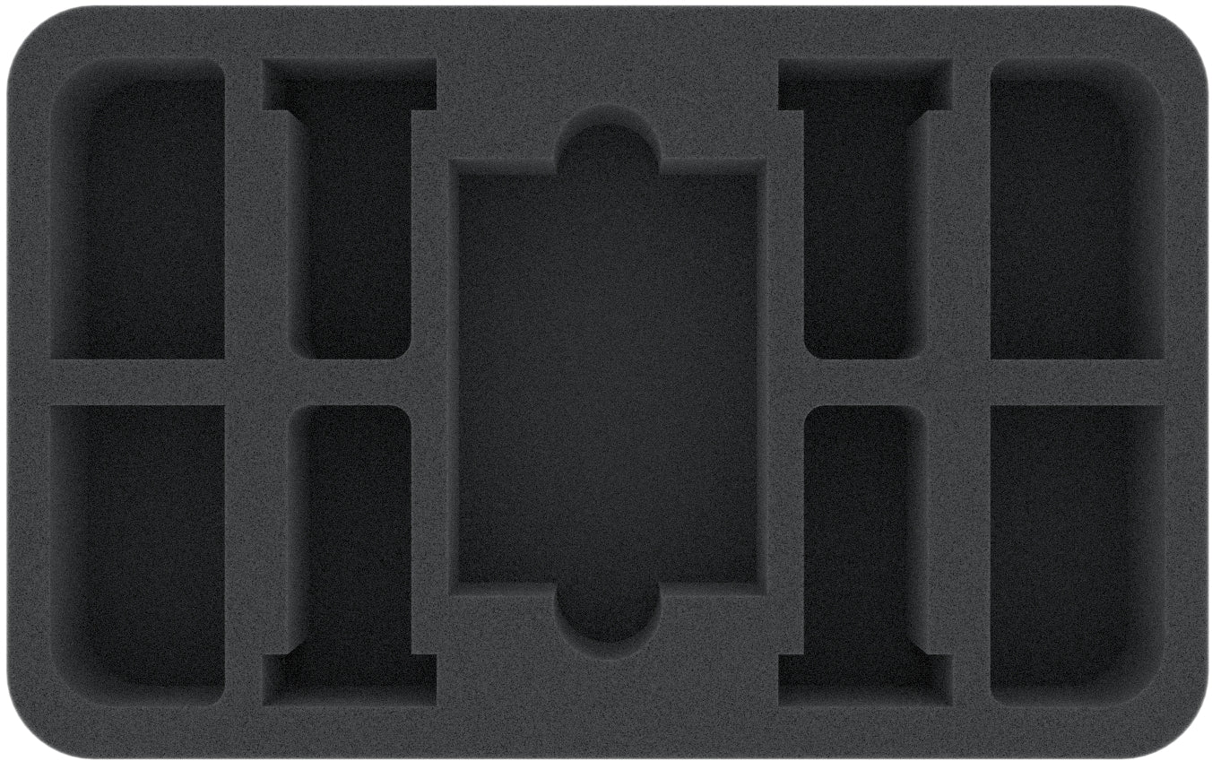 Insgesamt 9 Fächer bieten dir auf dieser Feldherr Half-Size-Schaumstoffeinlage Platz zum ordentlichen Aufbewahren und geschützten Transportieren von bis zu 8 Armada-Staffeln und den dazugehörigen Spielkarten. Die Staffeln inklusive Bases finden in den acht Fächern einen sicheren Platz.
