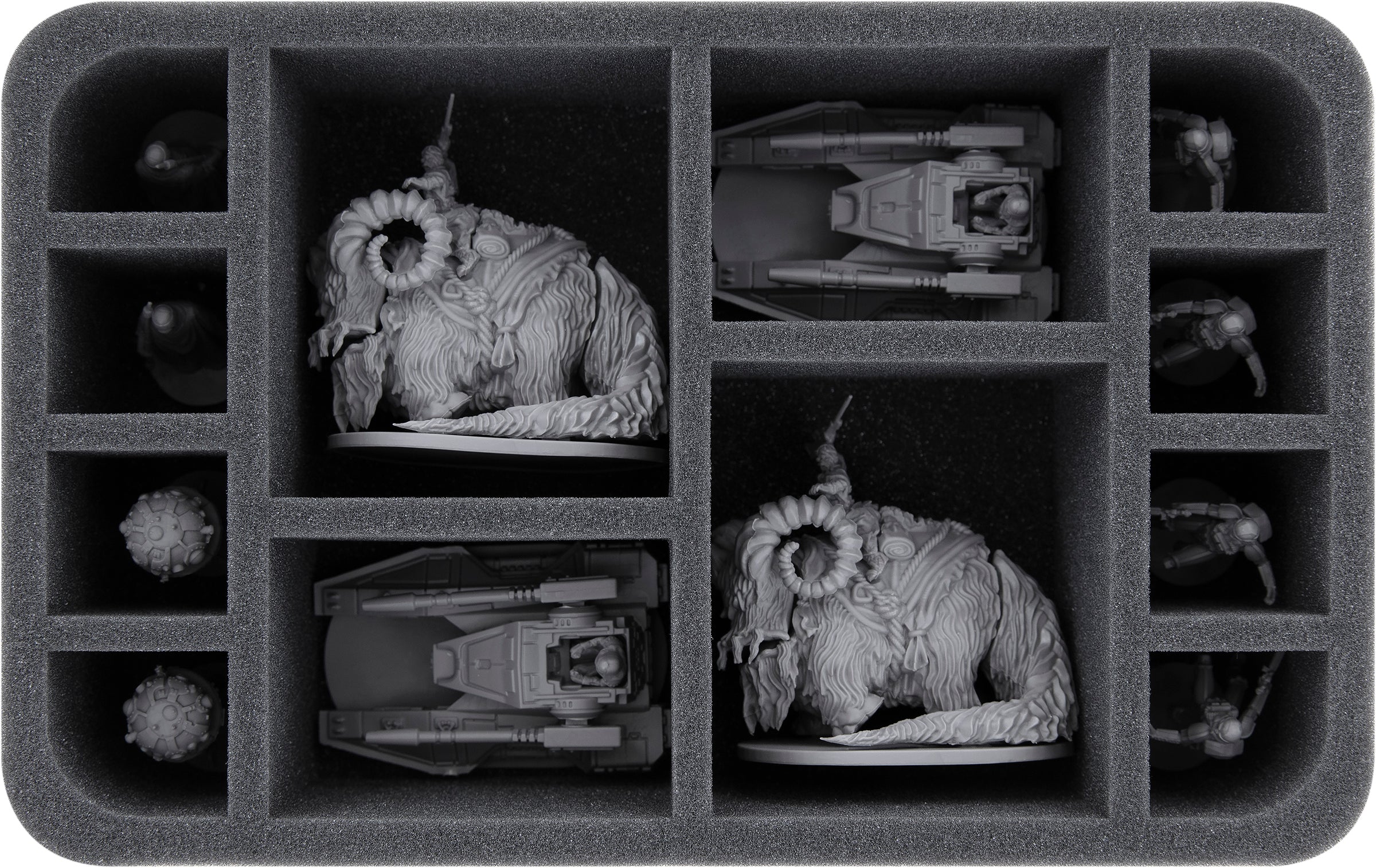 - 1 Half-Size Schaumstoffeinlage mit 12 Fächern für Bantha Rider, Captain Terro, SC2-M Repulsor Tanks und Standard Infanterie-Einheiten (HS075A027)
