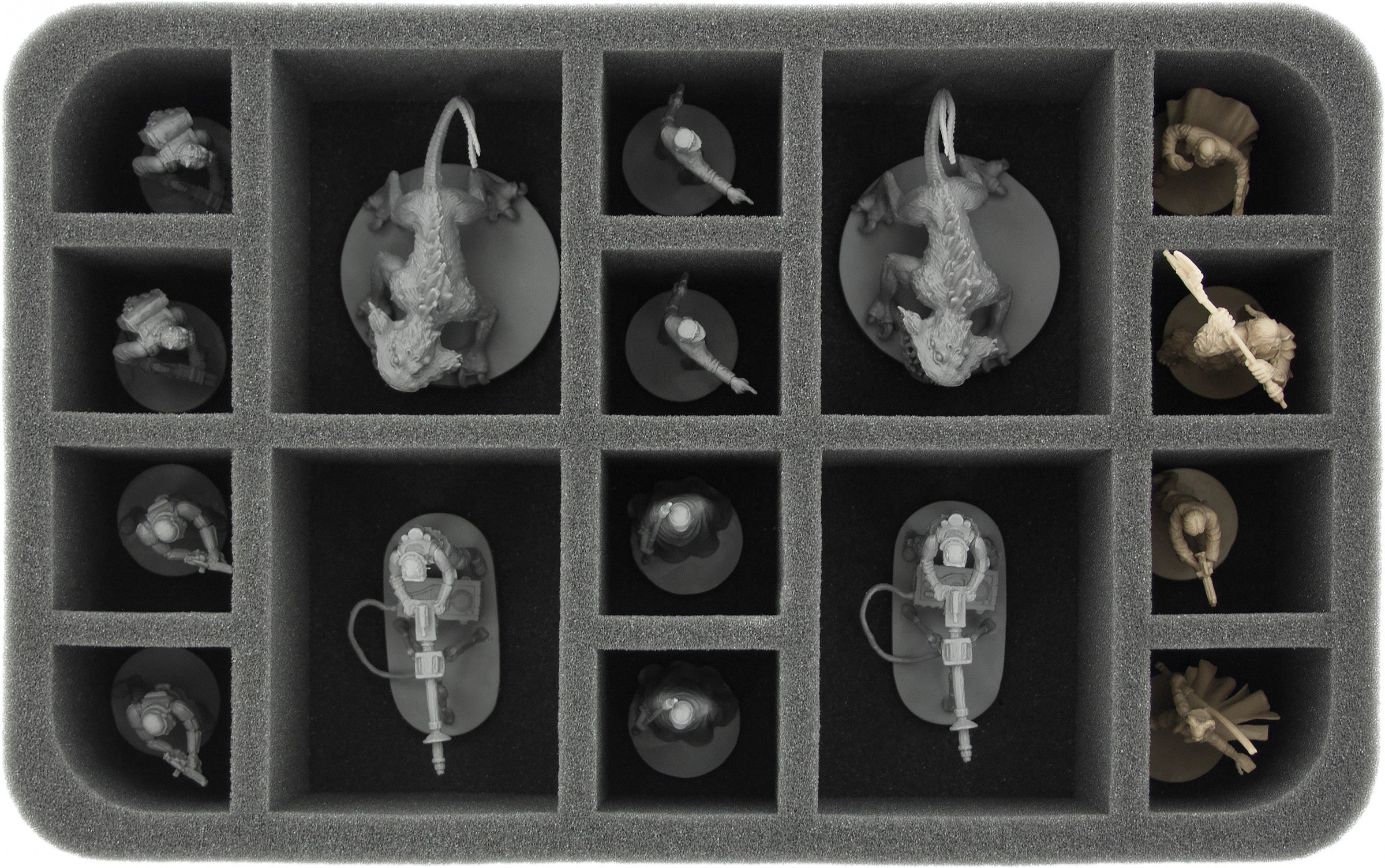 - 1 Half-Size Schaumstoffeinlage mit 16 Fächern für Standard Infanterie-Einheiten, größere Miniaturen wie Nexu + Spielmaterial (HS060IA04)