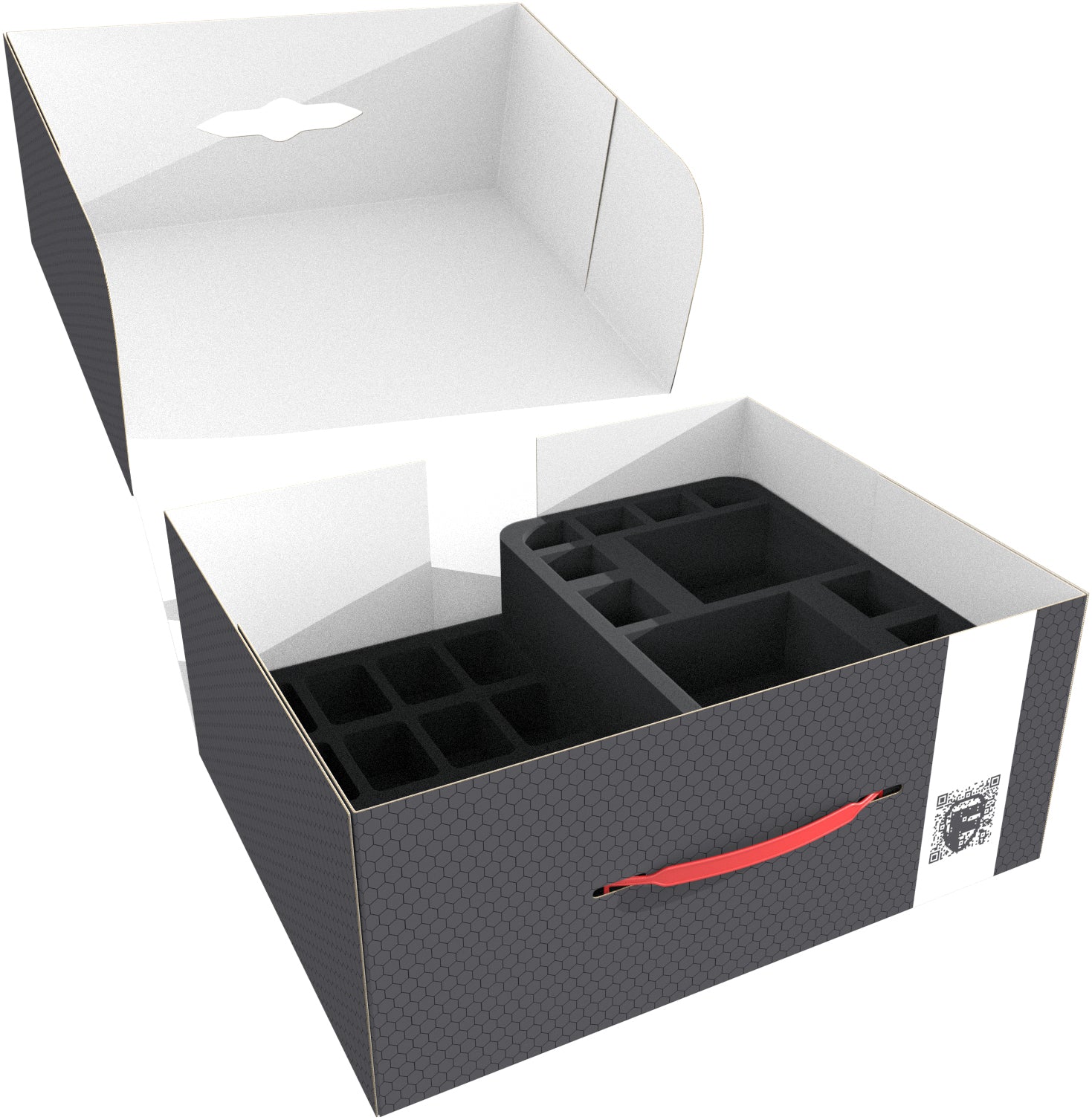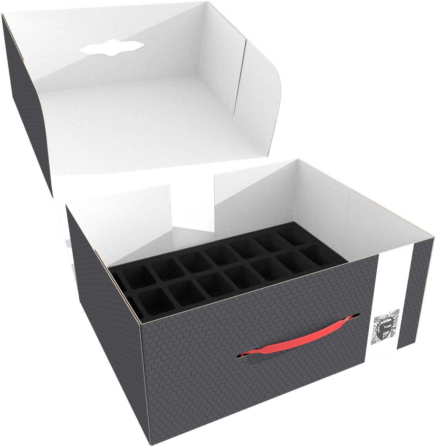 Die Lagerbox FSLB150 aus beschichtetem, doppelwelligem Karton ist nicht nur leicht, sondern auch besonders robust. Mit dem Tragegriff aus Kunststoff kannst du deine Truppen mühelos transportieren.