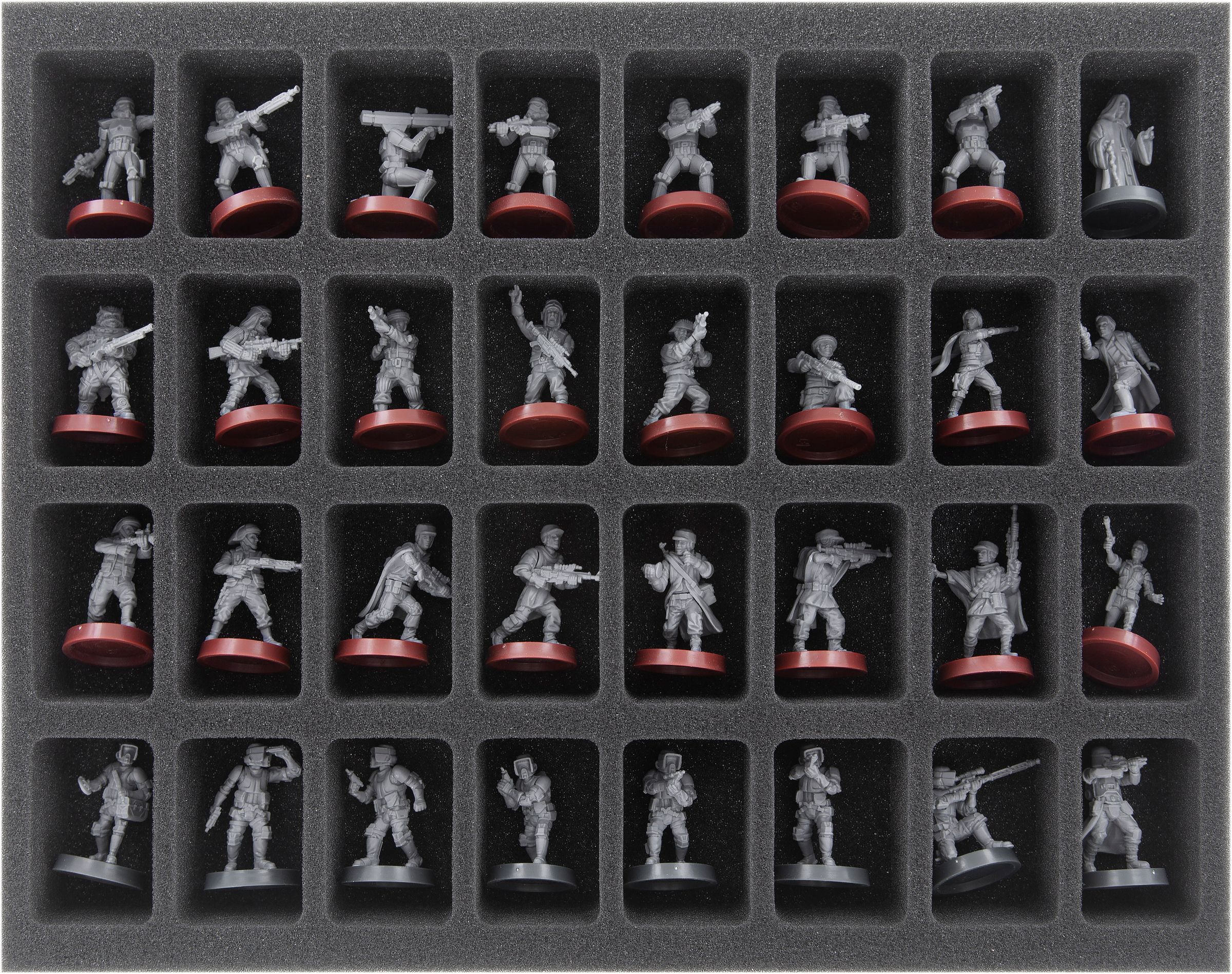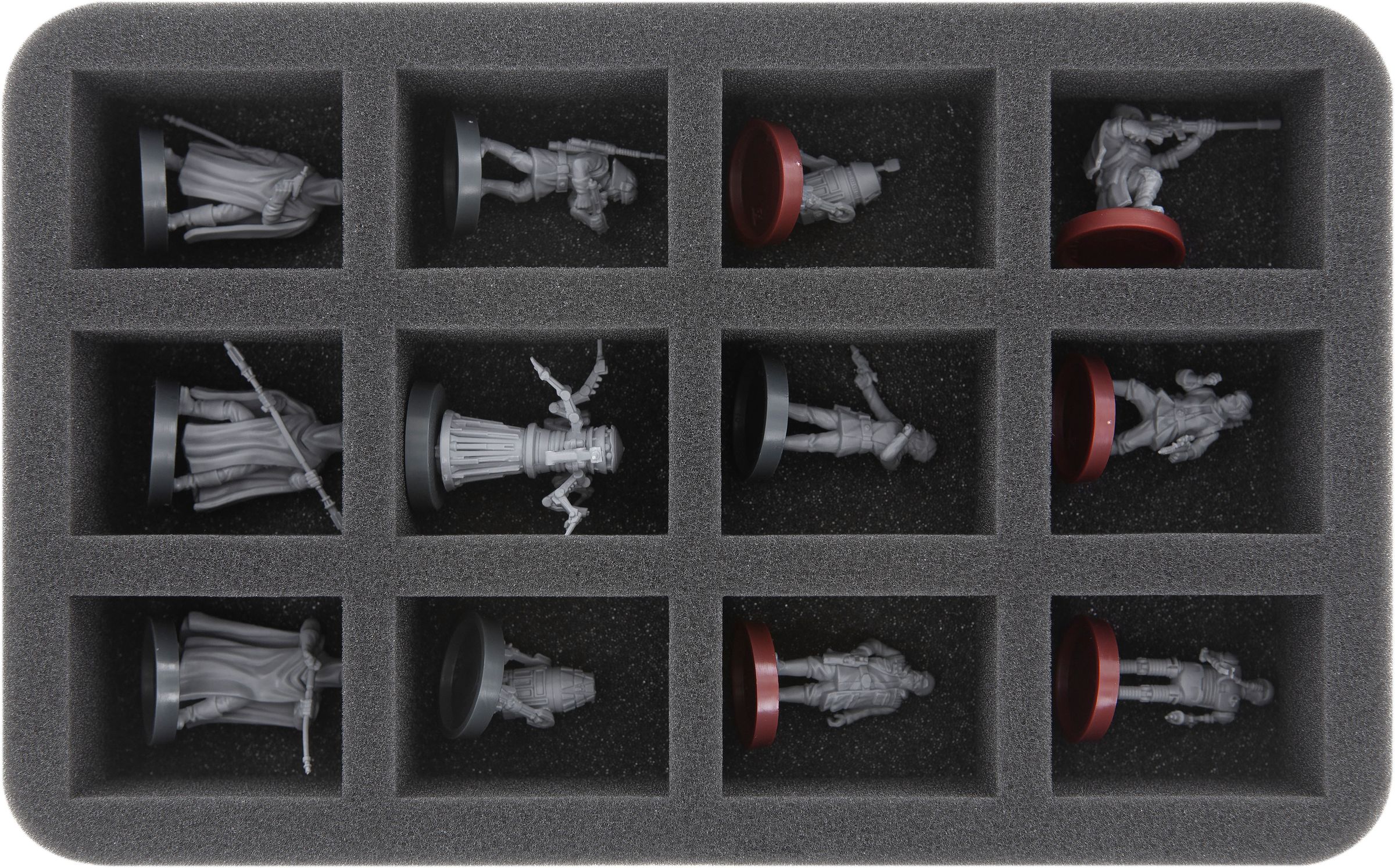 Egal ob Jedi oder Klonkrieger, jede Figur mit 30 mm Base bekommt einen Platz in einem der 12 Fächer der Einlage HS040LG07 und wartet, von Schaumstoff umgeben, auf ihren Einsatz.