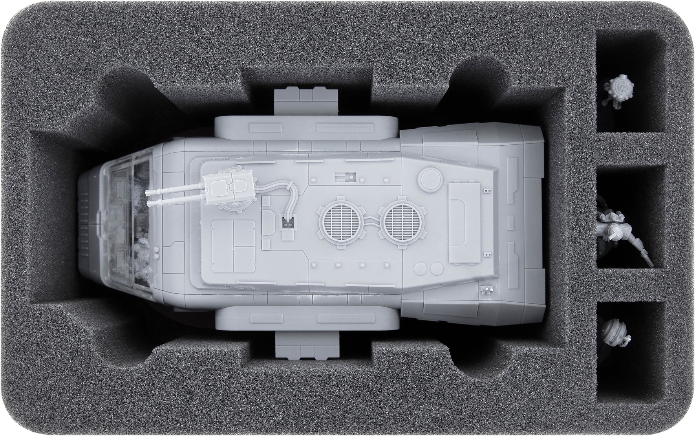 Auf dem Weg zum Spieltisch helfen die Panzerplatten leider wenig. Deshalb bekommst du hier die passende Feldherr Schaumstoffeinlage zum Schutz deiner Miniatur.