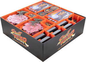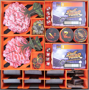 - Strukturierte Fächer für Miniaturen, Karten, Marker und Tokens rund um Street-Fighter-Spiele.