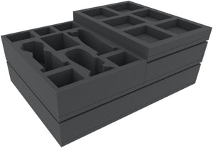 - Schutz vor Abnutzung, verbogenen Teilen und beschädigten Figuren durch stabile Einsätze und Trays.