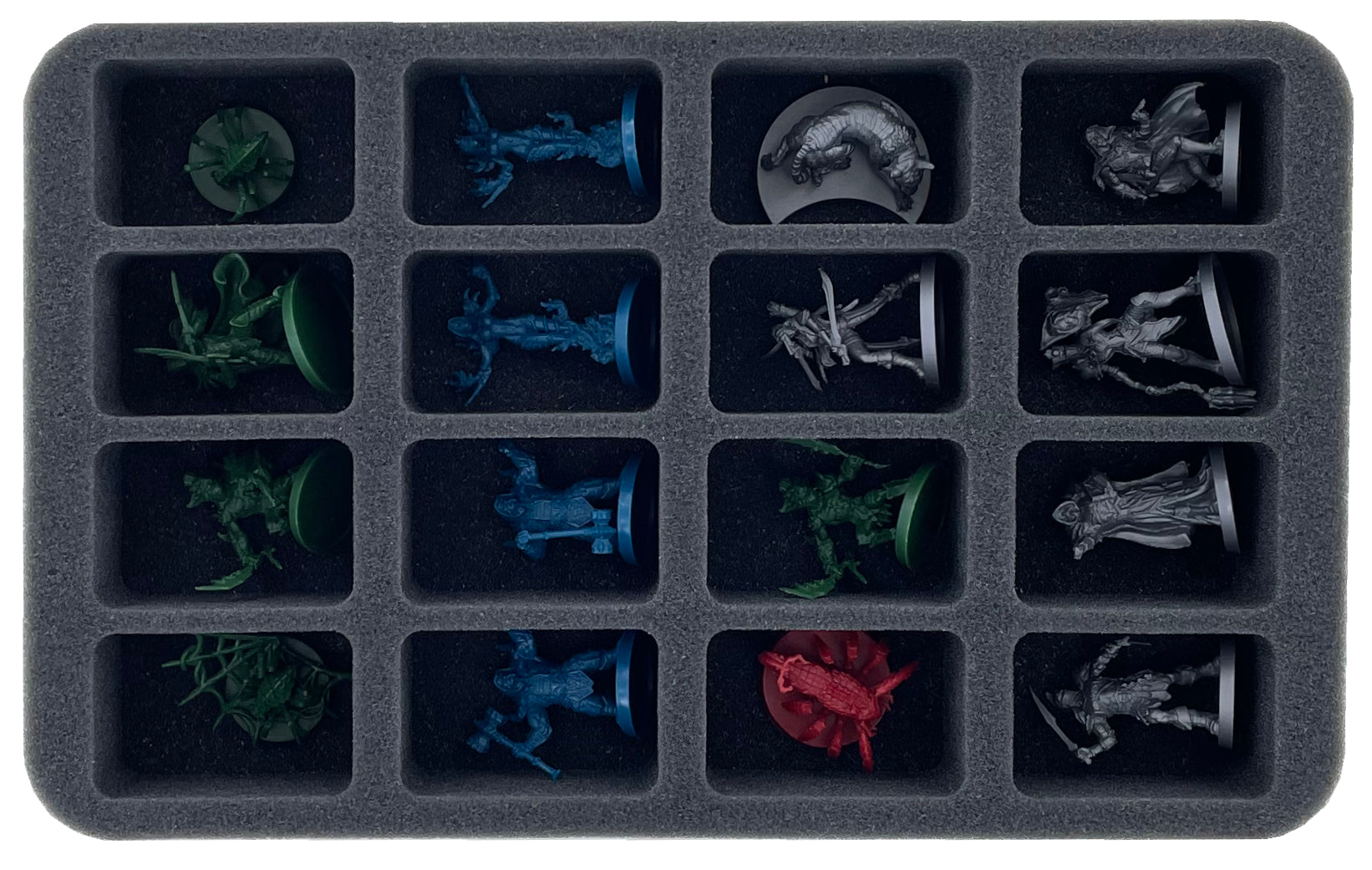 Egal ob Held oder Bossmonster, jede Miniatur erhält in den Schaumstoffeinlagen ein passgenaues Fach. Dank dieser haben die Miniaturen einen festen Sitz. Selbst wenn es beim Transport etwas holpriger zugehen sollte, verrutschen sie nicht und verbleiben an ihrem Platz.