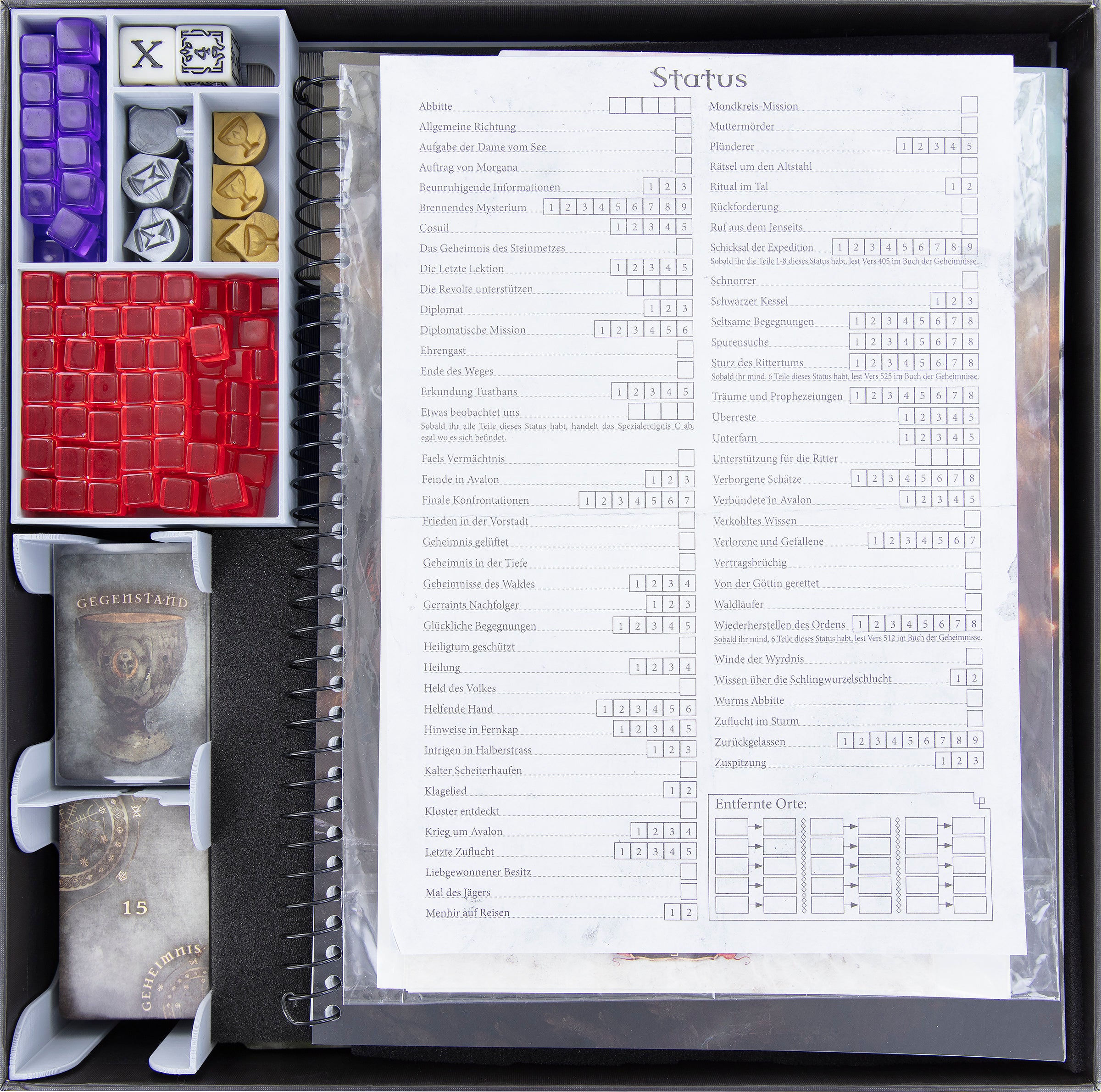 • Die beiden Sets passen genau in die originalen Brettspielboxen, einmal für das „Tainted Grail: Der Niedergang Avalons“ Grundspiel und einmal für die "Monsters of Avalon" Box von Awaken Realms.