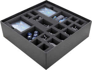 - Strukturierte Fächer für Spielfiguren, Marker, Plättchen und Karten in verschiedenen Formaten.