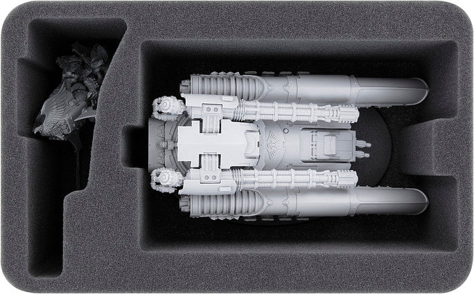 • 1 Half-Size-Schaumstoffeinlage mit 1 miniaturengenau geschnittenem Fach für Venerable Land Raider + 2 Fächer für größere Modelle wie Venerable Contemptor Dreadnought und Modelle mit ähnlichen Abmessungen (HS110A004)