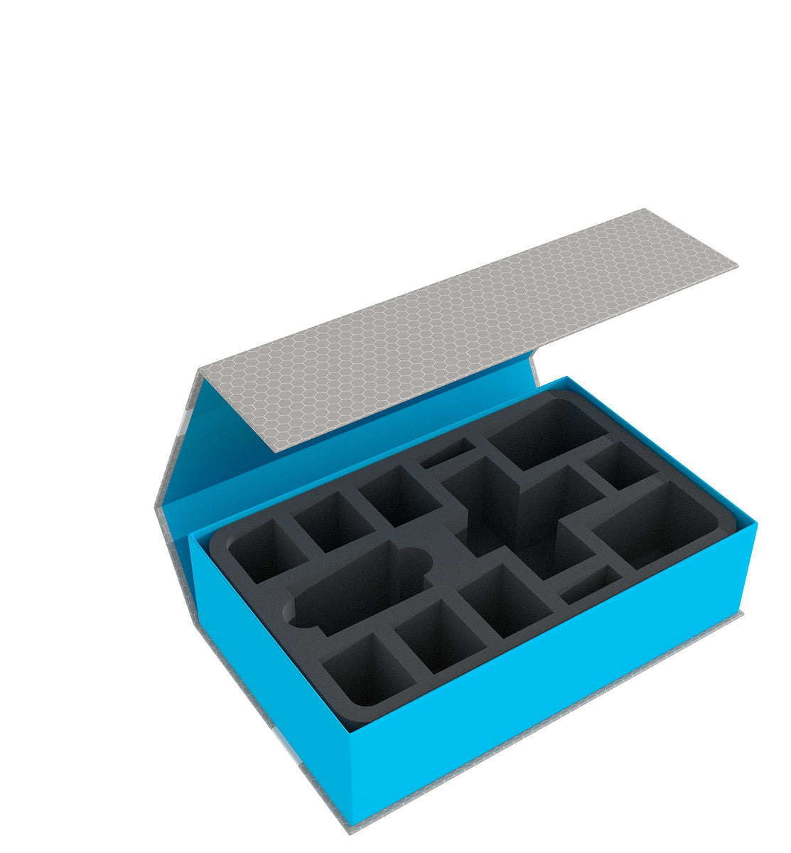 Damit deine Figuren den Transport unbeschädigt überstehen, haben wir die passende Feldherr-Magnetbox für dich. Die Magnetbox blau inklusive maßgeschneiderter Feldherr Half-Size Schaumstoffeinlage sorgt dafür, dass deine Miniaturen sicher zum Spieleabend kommen.