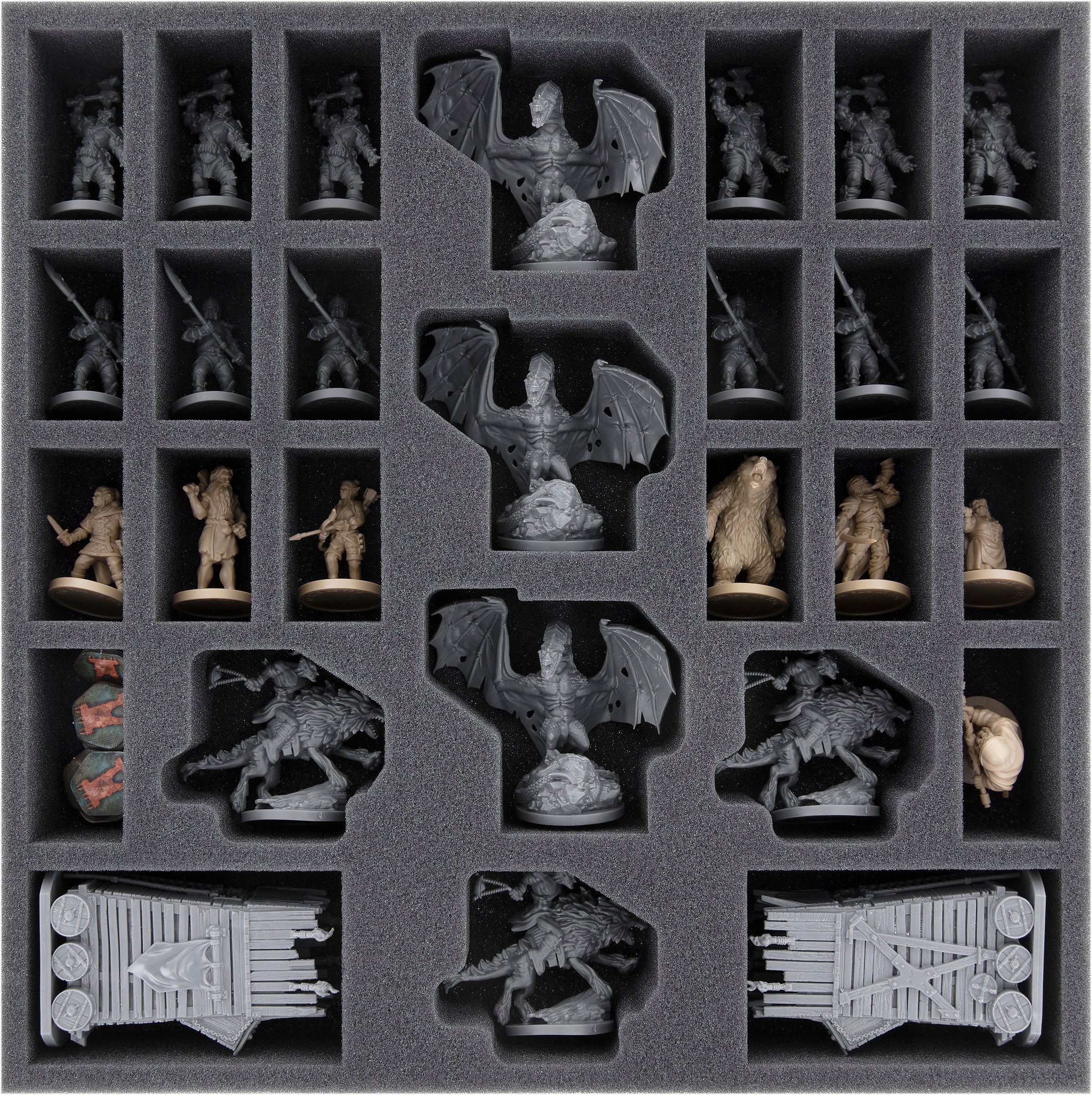 - Bietet Platz für alle 7 Helden- und 21 Gegner-Miniaturen, sowie das komplette Spielzubehör der Erweiterung.