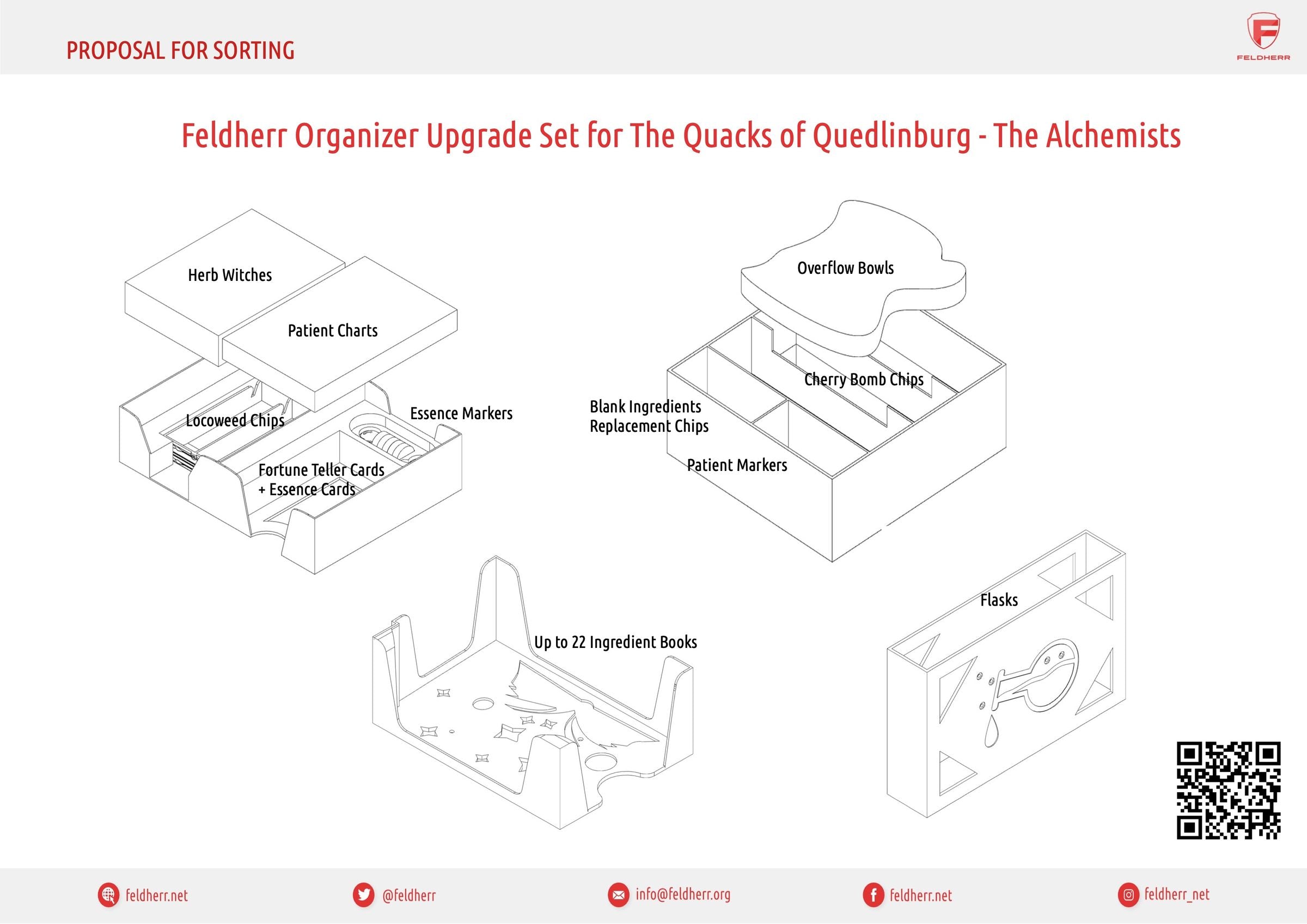 - Feldherr Organizer (ORG005) + Upgrade-Set bieten Platz für das gesamte Spielmaterial des Grundspiels "Die Quacksalber von Quedlinburg" und der Erweiterungen "Die Kräuterhexen" und “Die Alchemisten”.