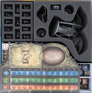 - Sortierte Unterbringung von Miniaturen, Karten, Tokens und Spielplanteilen in passgenauen Fächern.