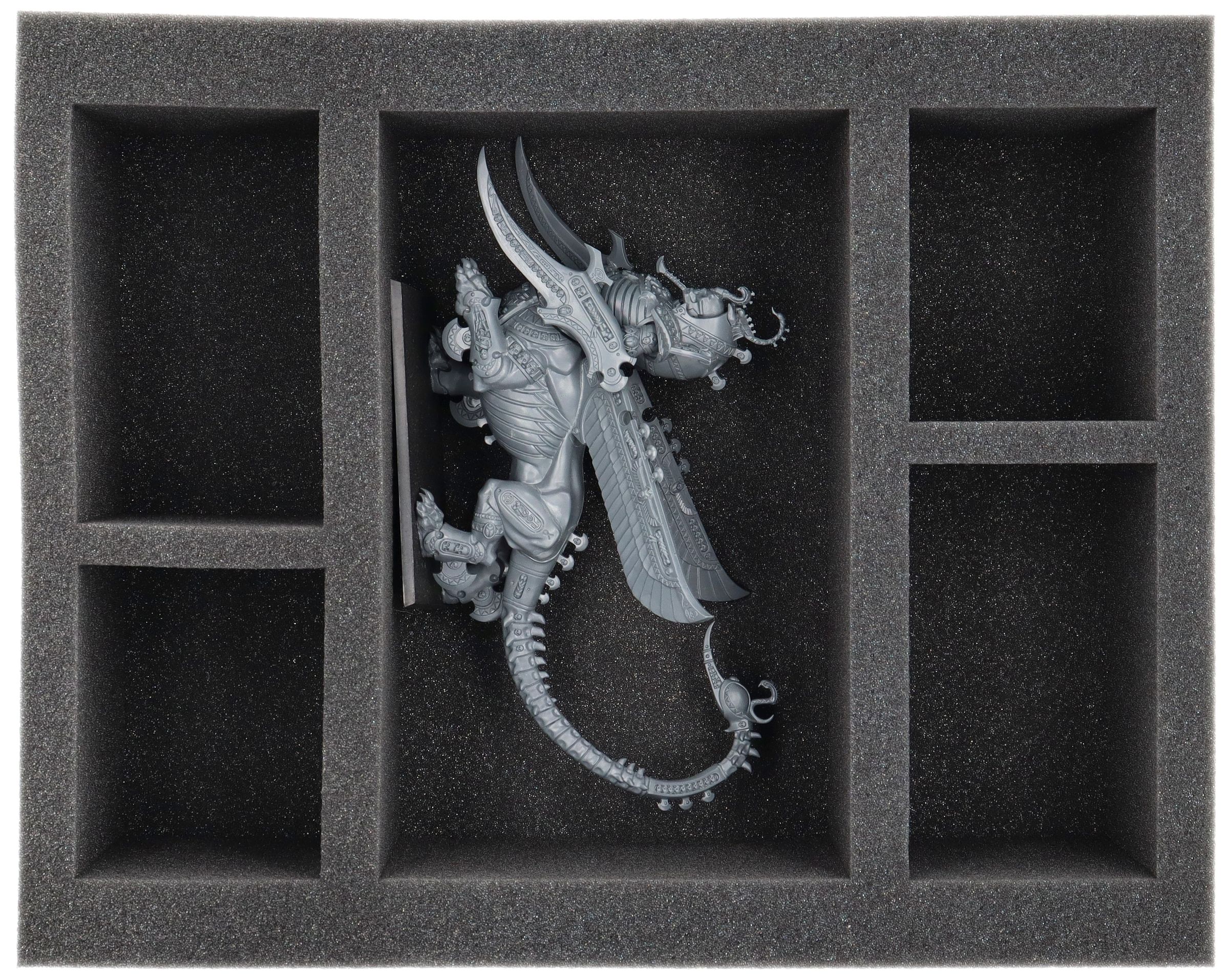 Diese 110 mm hohe Schaumstoffeinlage ist unterteilt in 5 Fächer. Das große Fach eignet sich besonders gut zum sicheren Aufbewahren der Nekrosphinx oder von ausladenden Miniaturen mit ähnlichen Abmessungen. Die Kriegssphinx Bauvarianten passen nicht in diese Einlage.