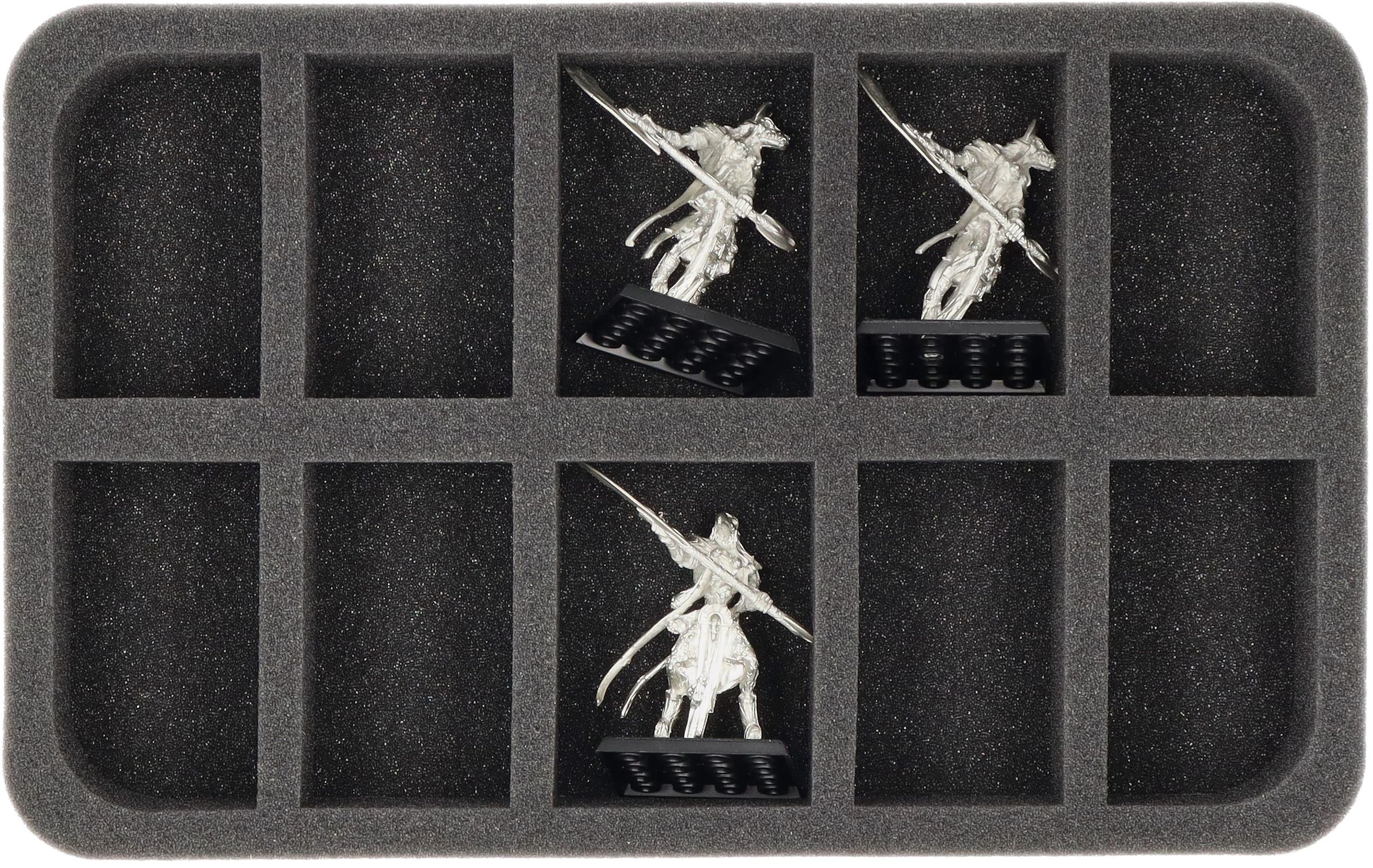 Auf dieser Feldherr Schaumstoffeinlage hast du Platz für bis zu 10 Miniaturen deiner Armee. Das Insert eignet sich besonders gut zum Aufbewahren von ausladenden Infanterie Einheiten wie Ushabit mit rittuellen Klingen und Miniaturen mit ähnlichen Abmessungen.