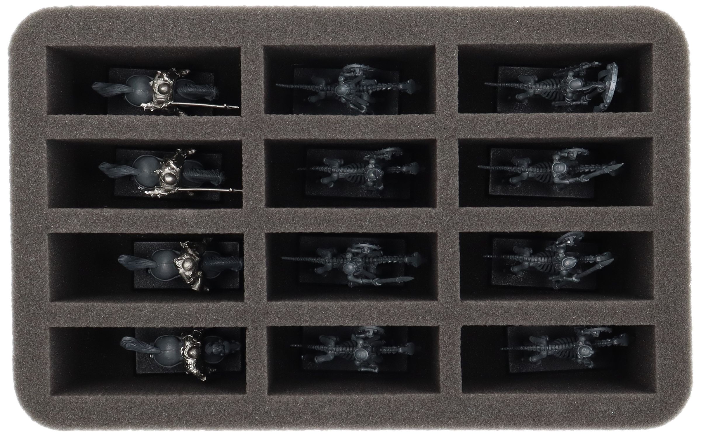 Die Feldherr Half-Size Schaumstoffeinlage bietet Platz für bis zu 12 Miniaturen deiner Armee. Ideal für Kavallerie Einheiten wie Skelettreiter (inkl. Bannerträger) und Bogenreiter oder Modelle mit ähnlichen Abmessungen.