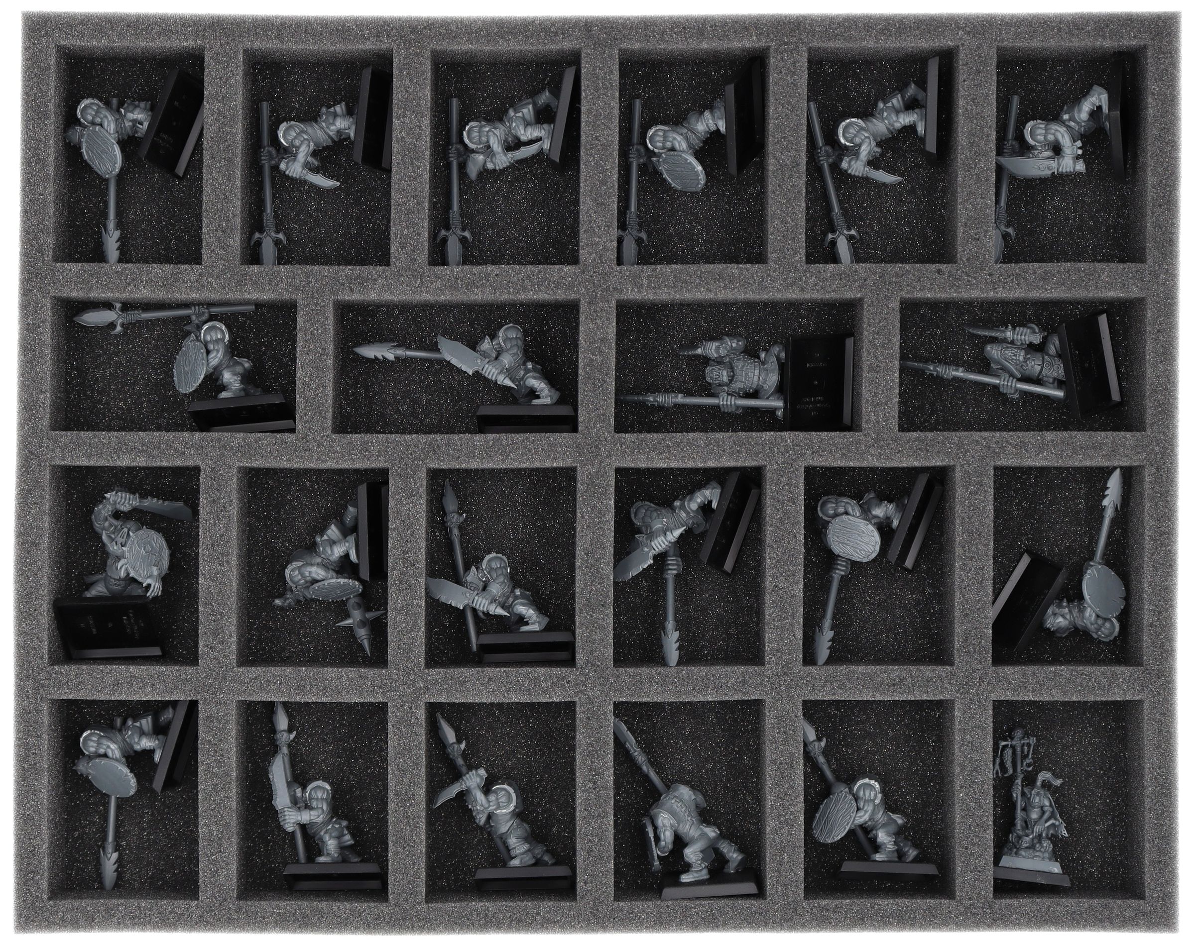 Die Feldherr Full-Size Schaumstoffeinlage bietet Platz für bis zu 22 Miniaturen deiner Armee. Ideal für Standard Miniaturen der Orks und Goblins.