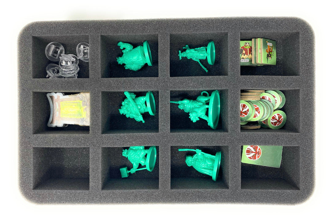 - 1 Half-Size-Schaumstoffeinlage mit 16 Fächern für Kickstarter exklusive Miniaturen wie Ronin, Dark Observer, Gambler, Merchant, Abyssal und die Three Shadows + Plastik Token Upgrades (HS035BO)