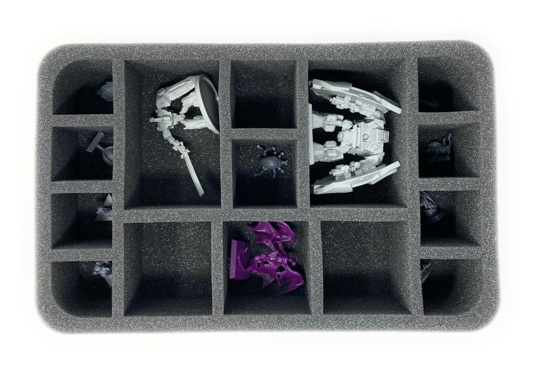 - 1 Half-Size-Schaumstoffeinlage mit 16 Fächern für Miniaturen wie Dominator, Guards, Servants und Beastmasters (HS035BO)