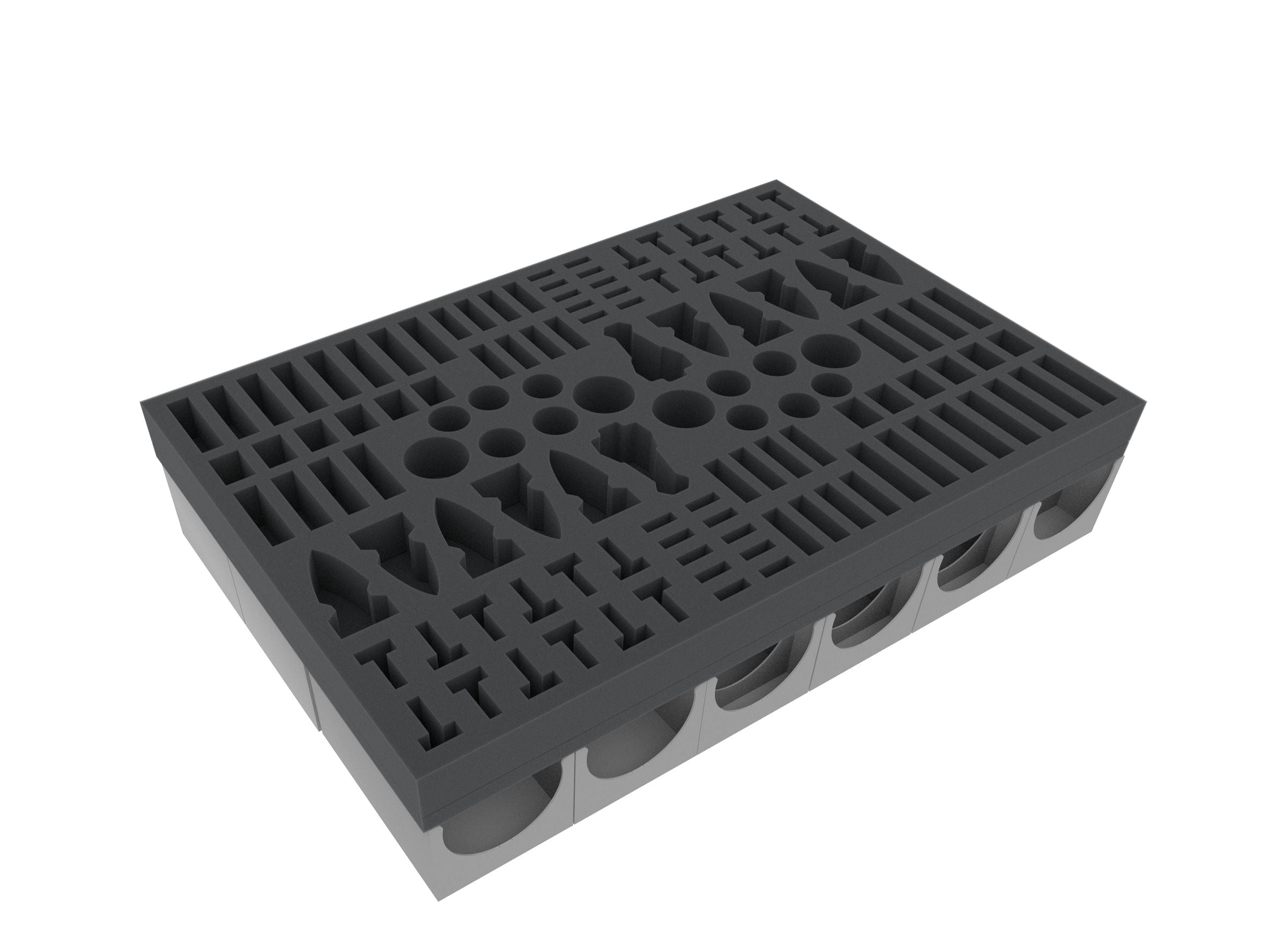 Zum Schutz deiner Miniaturen enthält das Set drei Schaumstoffeinlagen. Jedes Schaumstoff-Insert kümmert sich mit 122 individuell auf die Miniaturen zugeschnittenen Fächern darum, dass jede Figur sicher verpackt ist. Auf eine Einlage passen zwei Fraktionen, übersichtlich voneinander getrennt.