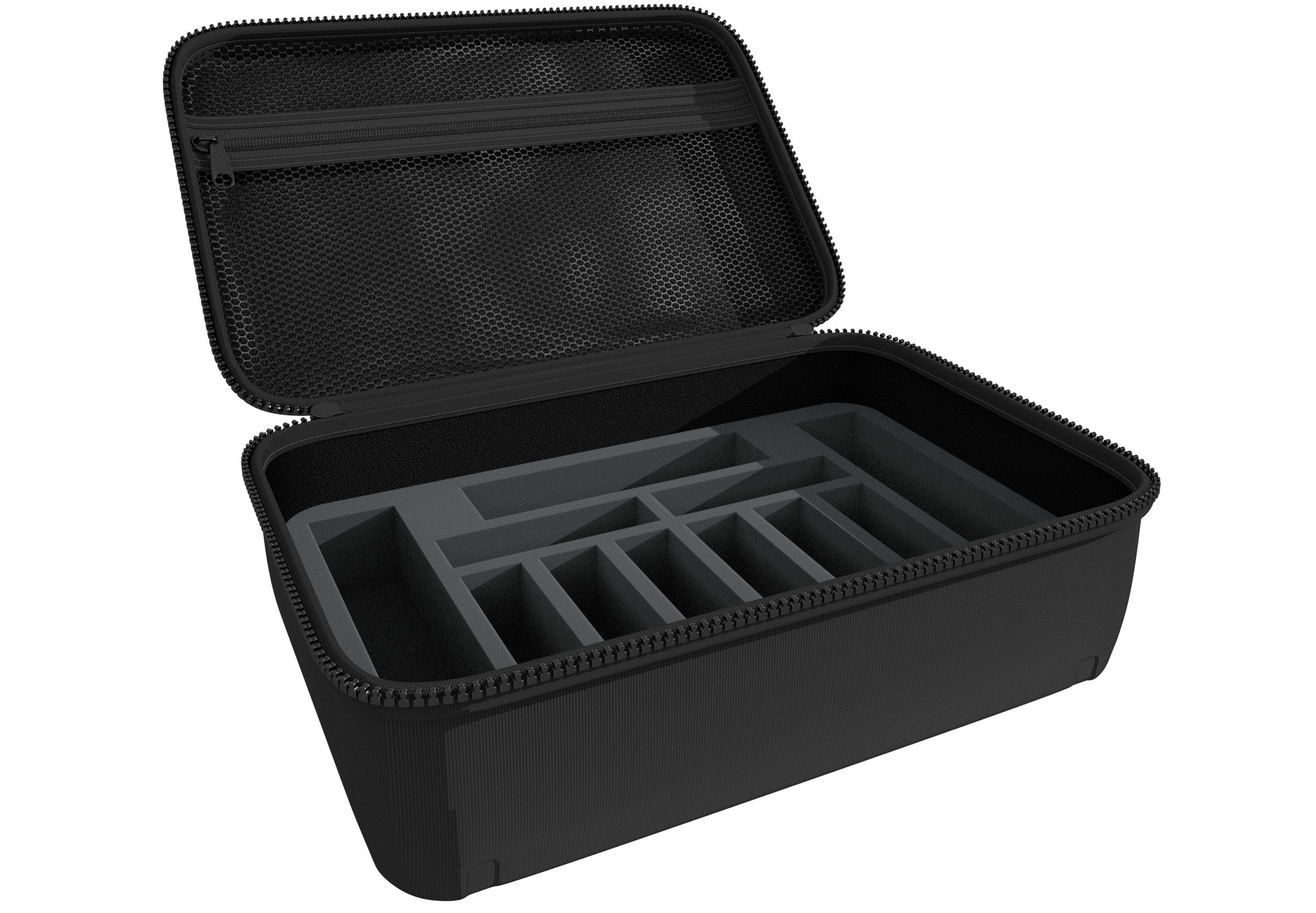Das Half-Size Case 90 ist aus widerstandsfähigem und trotzdem angenehm leichtem EVA gefertigt. Der schwarze Polyesterbezug und die griffige Form sorgen für einen eleganten Abschluss und der Inhalt ist optimal vor äußeren Einflüssen geschützt.