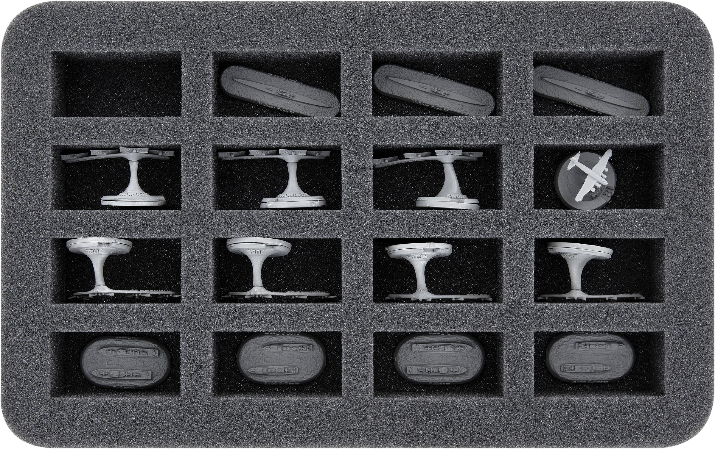 - 2 Half-Size Schaumstoffeinlagen für je 11 Miniaturen wie z.B. kleineren Fubuki- oder Fletcher-Class Destroyer und größere Schiffe wie die USS Indianapolis oder Kumano 1944 (HS045A011)