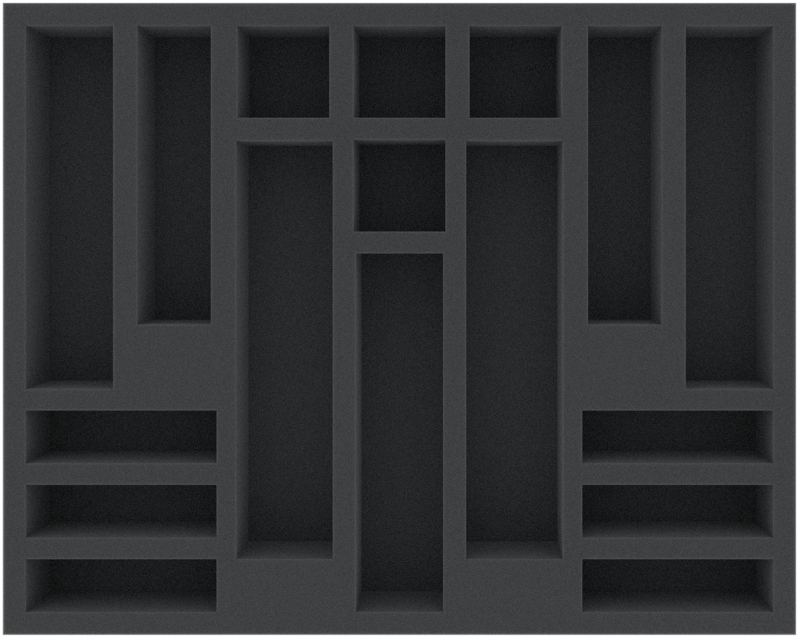Diese Full-Size-Schaumstoffeinlage eignet sich mit ihren 17 Fächern hervorragend, um deine Miniaturen übersichtlich und bestens geschützt aufzubewahren.