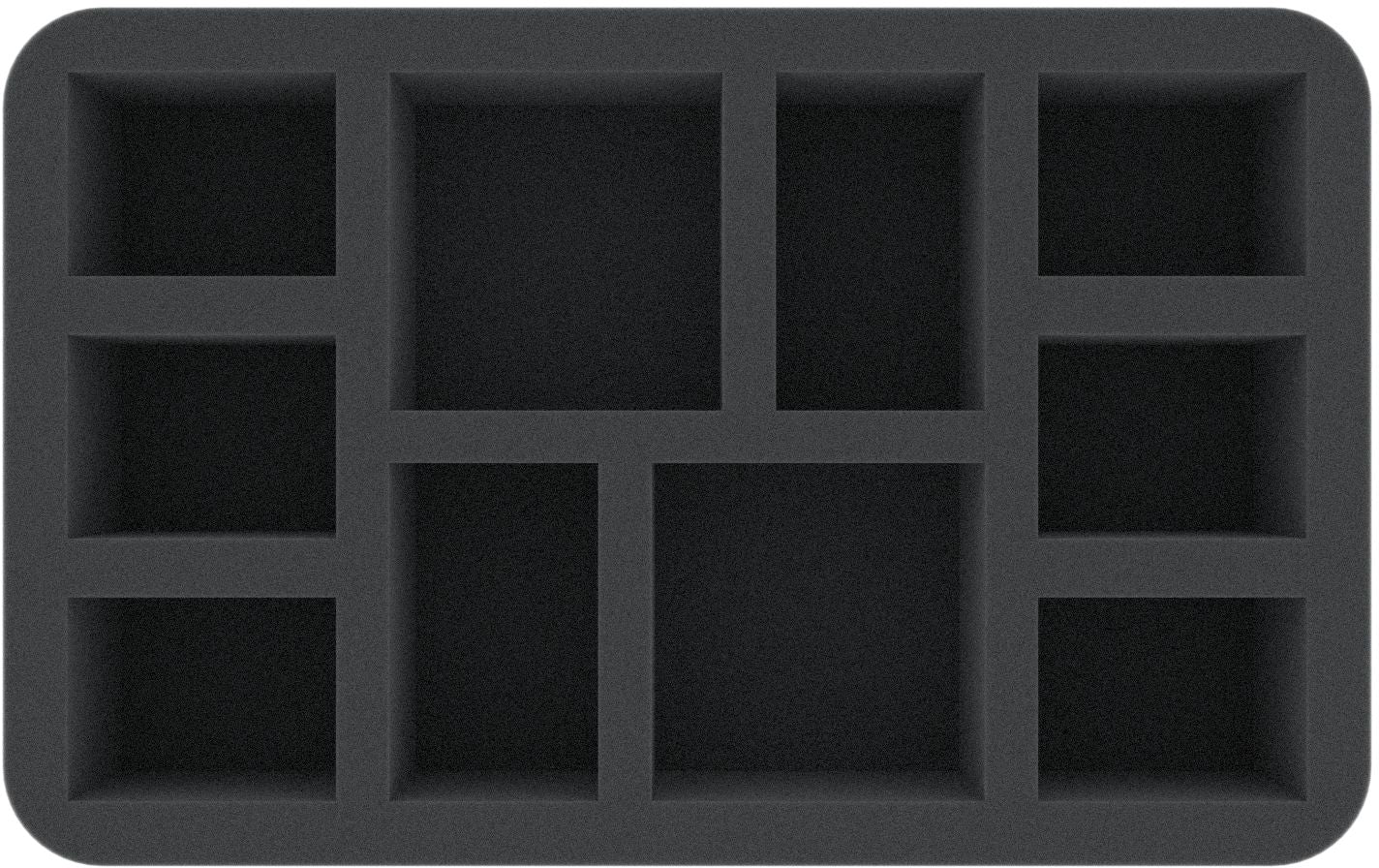 Diese Feldherr Schaumstoffeinlage verfügt über 10 Fächer zum sicheren und ordentlichen Aufbewahren von Warcry-Miniaturen. Sie ideal geeignet, um größere, ausladende Figuren deiner Warbands, wie z. B. The Unmade, sicher zu verstauen. Der feinporige Schaumstoff bietet zuverlässigen Schutz vor Beschädigung – empfindliche Teile bleiben unversehrt, aufgetragene Farbe bemalter Modelle zerkratzt nicht.