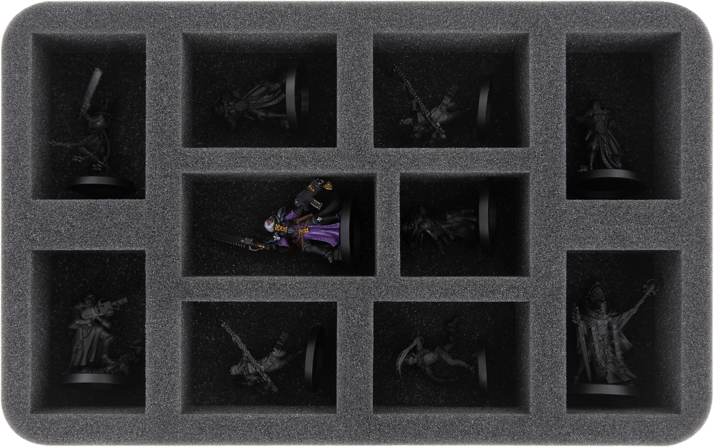 - 1 Half-Size Schaumstoffeinlage mit 10 Fächern für ausladende Standardinfanterie wie Sisters Repentia, Arco-flagellants, Battle Sisters und Modelle mit ähnlichen Abmessungen (HS050A032)