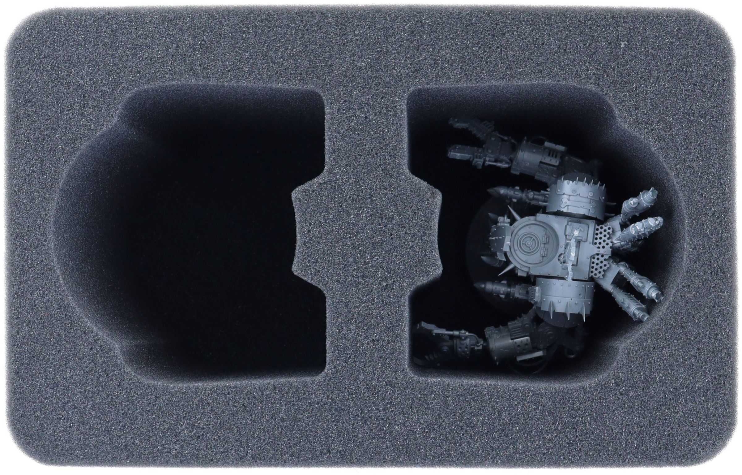 Diese Feldherr Half-Size Schaumstoffeinlage, mit 2 miniaturengenau zugeschnittenen Fächern für deine Gargbots, garantiert, dass die empfindlichen Modelle sicher auf dem Schlachtfeld ankommen und auch zukünftig kampfbereit sind.