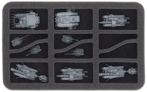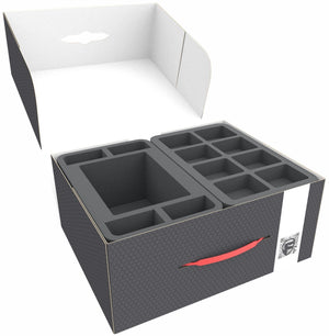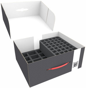 Passende Aufbewahrung für Warhammer Legions Imperialis sorgt dafür, dass deine zahlreichen Miniaturen, Marker und Geländestücke sicher organisiert bleiben und bequem zu Spielen transportiert werden können.