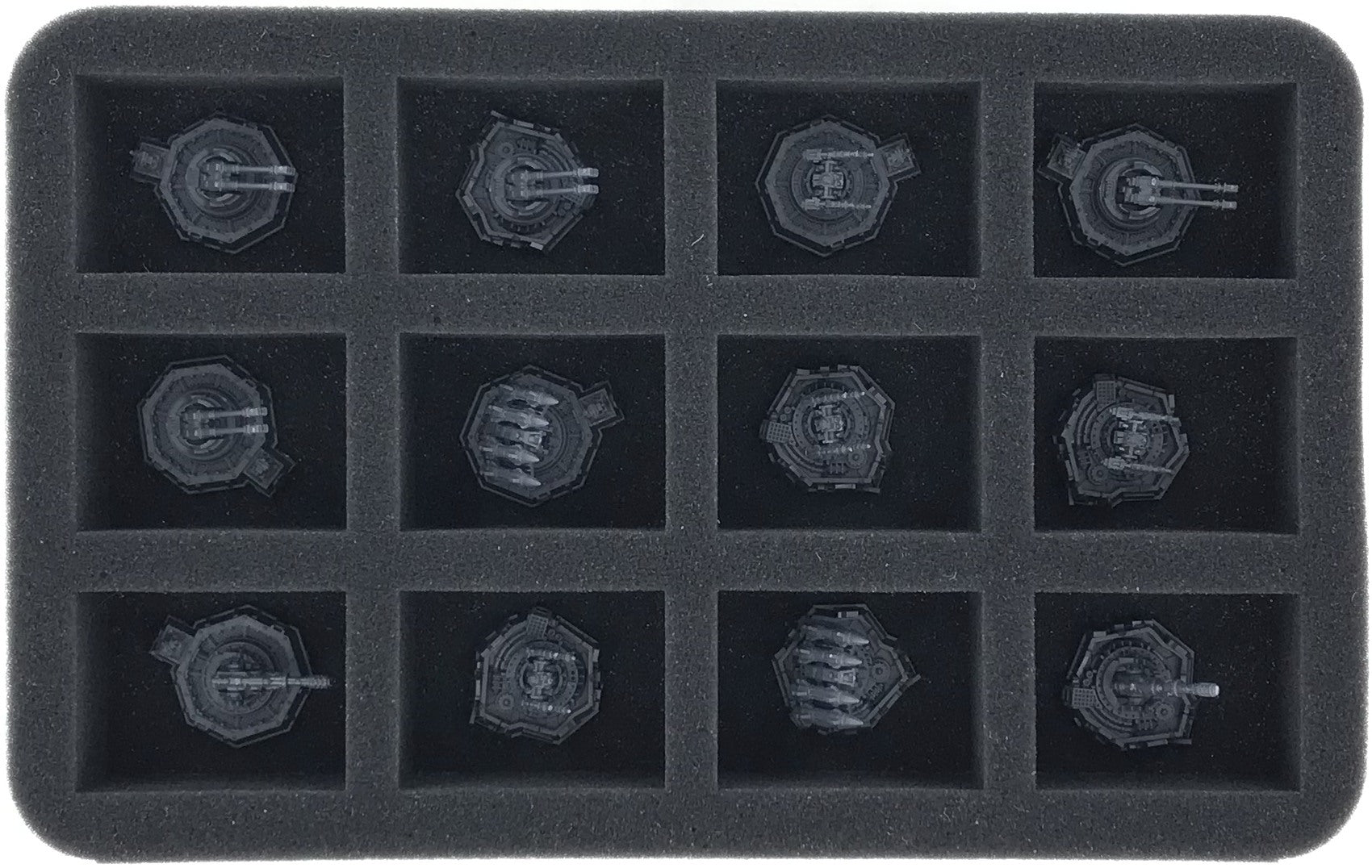 Egal ob Flieger oder Bodenziel, jedes Modell erhält ein eigenes Fach. Der passgenaue Zuschnitt stellt sicher, dass Waffensysteme, Geschütztürme und Raketen unbeschadet an den Fliegern verbleiben und auch gestalte Bases und Bodenziele bestens geschützt sind. Dabei schützt der weiche Schaumstoff auch die Farben deiner Modelle vor Farbabrieb und Kratzern.