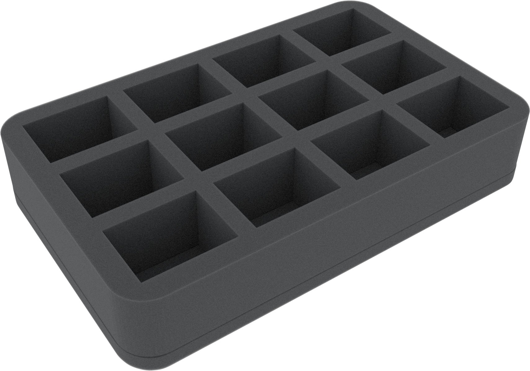 Diese Half-Size-Schaumstoffeinlage ist unterteilt in 12 Fächer. Sie bietet damit bis zu 12 Questoris Knights des Adeptus Titanicus einen sicheren Platz. Die Unterbringung der Miniaturen in einzelnen Fächern und der weiche Schaumstoff sorgen dafür, dass die Miniaturen optimal vor Beschädigung geschützt sind und Farben kolorierter Modelle erhalten bleiben.