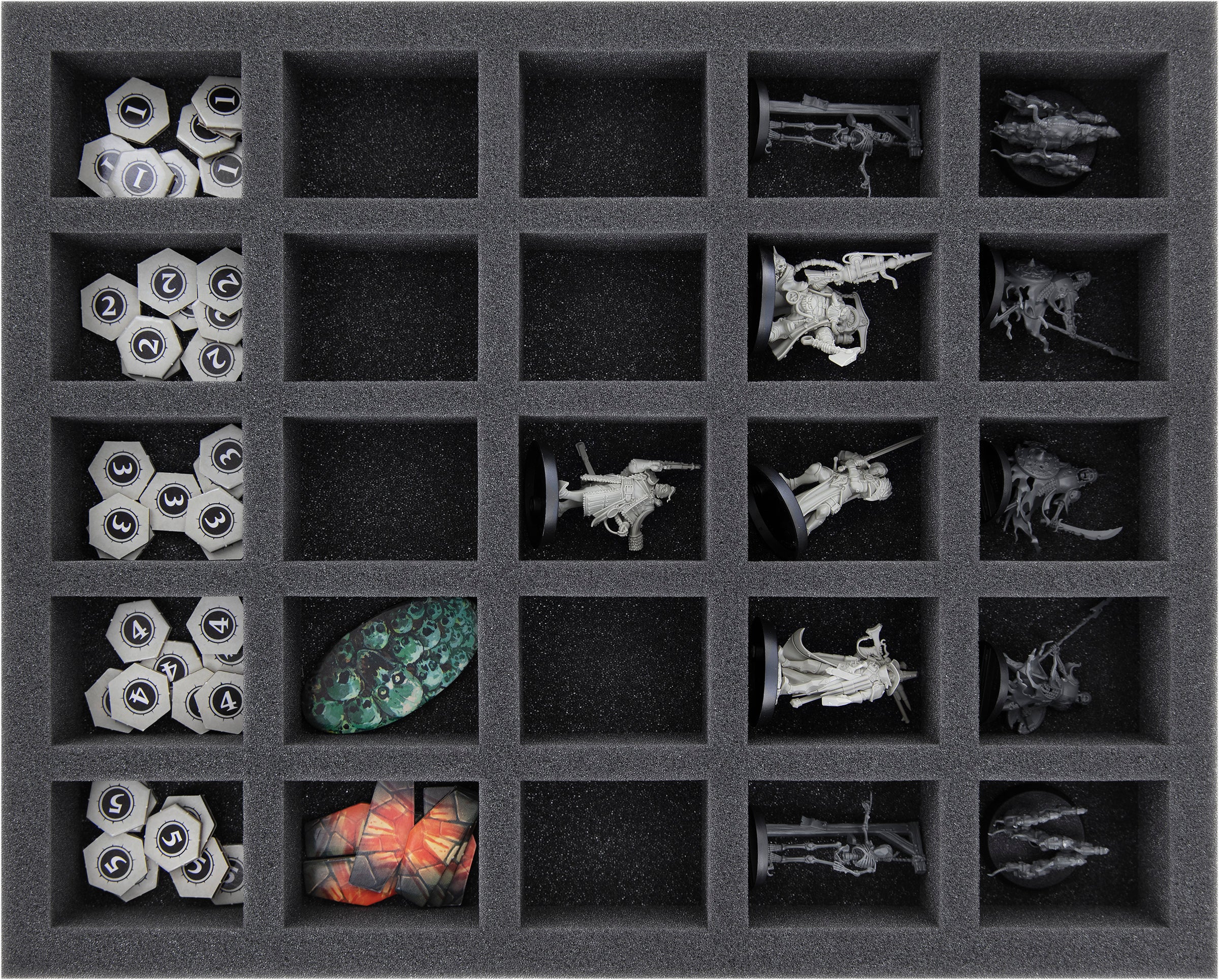 - 2 Full-Size-Schaumstoffeinlagen mit je 25 Fächern für Miniaturen (FSLQ040BO)