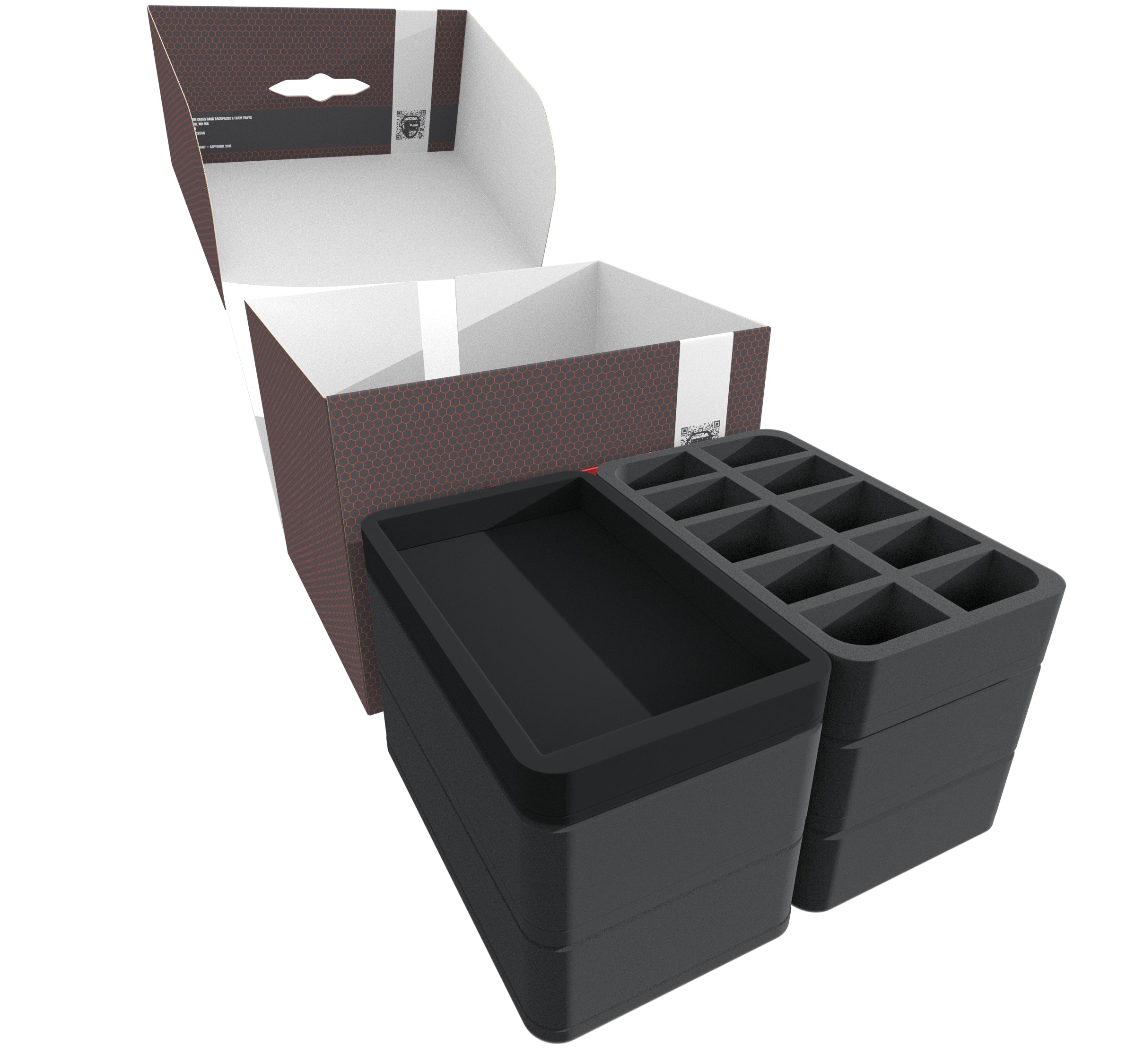 Natürlich enthalten die Erweiterungen jede Menge Spielmaterial. Damit dieses unbeschädigt zum nächsten Spieleabend kommt, haben wir für dich die passende Lagerbox FSLB250 mit Feldherr-Schaumstoffeinlagen. So bekommt jede Karte und jeder Token ein passendes Fach. Und für die optional erwerbbaren Figuren ist natürlich auch Platz.