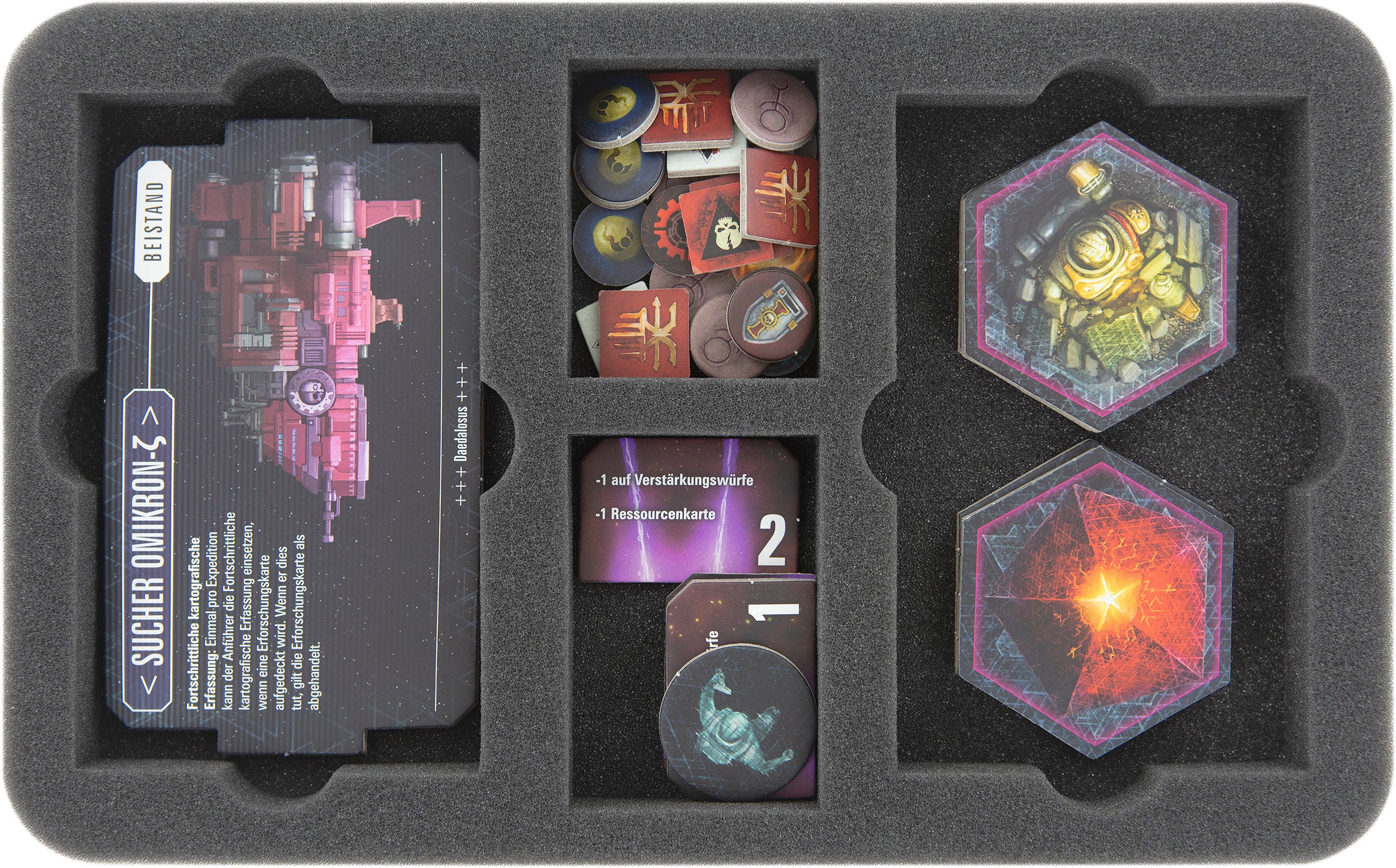 - 1 Full-Size-Schaumstoffeinlage für größeres Zubehör aus den Erweiterungen „Eskalation“ und „Aufstieg“ (FS050I031BO)