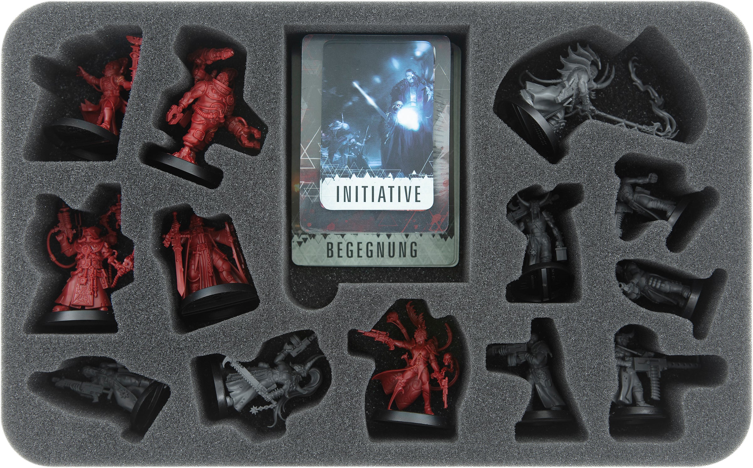 Hier bekommt nicht nur jedes Modell ein eigenes, miniaturengenau zugeschnittenes Fach. Es gibt auch für jede Erweiterung eine eigene Schaumstoffeinlage. Denn Chaos und Gedränge machen dir auf der Schwarzen Festung schon genug zu schaffen.