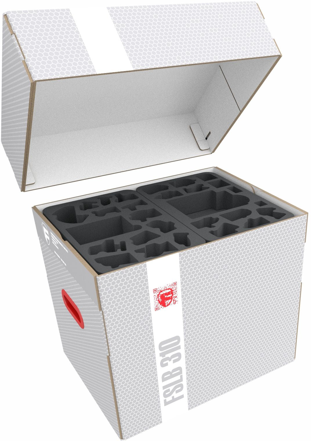 Damit deine Blackstone Fortress-Sammlung vollständig und unversehrt am Spieltisch ankommt, ist die Box ist gefüllt mit zwei Full-Size und acht Half-Size Schaumstoffeinlagen, maßgeschneidert für deine Kollektion.