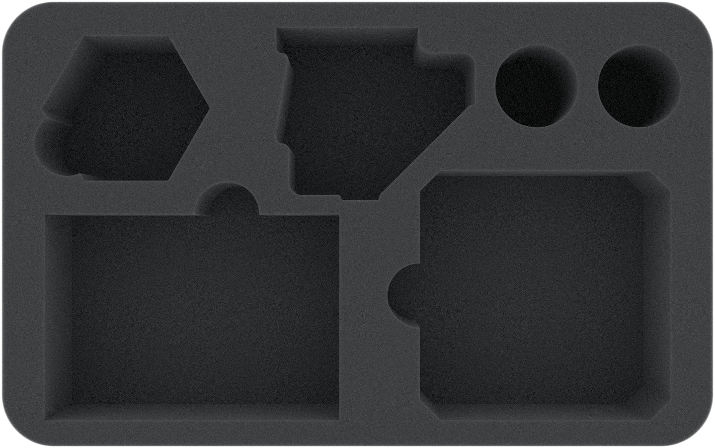 - Die Half-Size-Schaumstoffeinlage hat die Abmessungen: 275 mm x 172 mm x 60 mm Gesamthöhe (50 mm Nutzungshöhe + 10 mm Boden)
