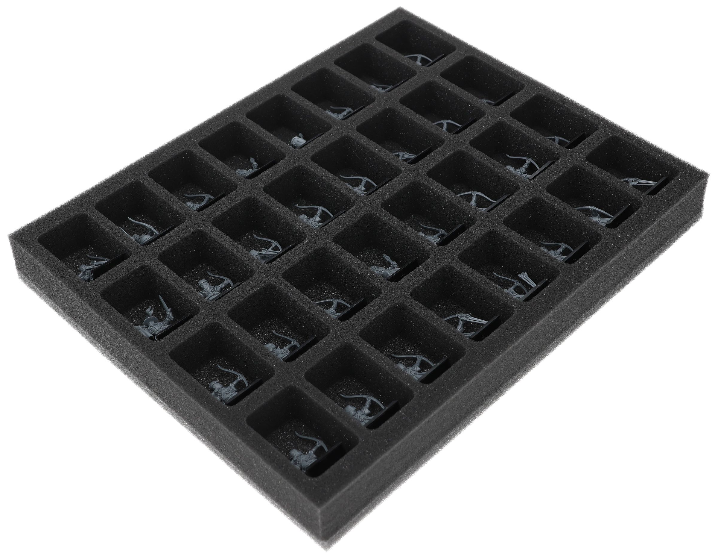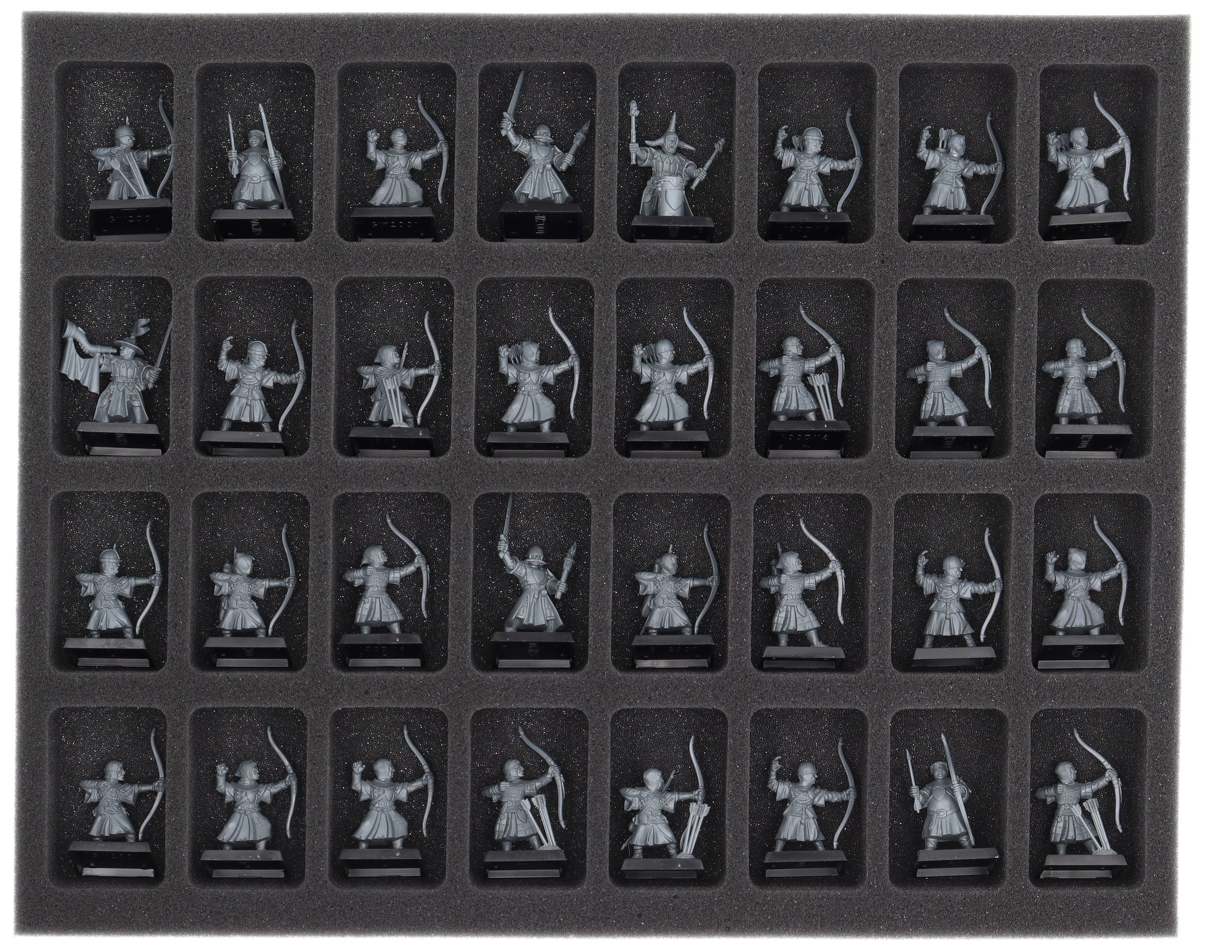 Auf dieser Feldherr Schaumstoffeinlage hast du Platz für bis zu 32 Miniaturen deiner Armee. Das Insert eignet sich zum Beispiel besonders gut zum Aufbewahren der Bogenschützen und Modellen mit ähnlichen Abmessungen.