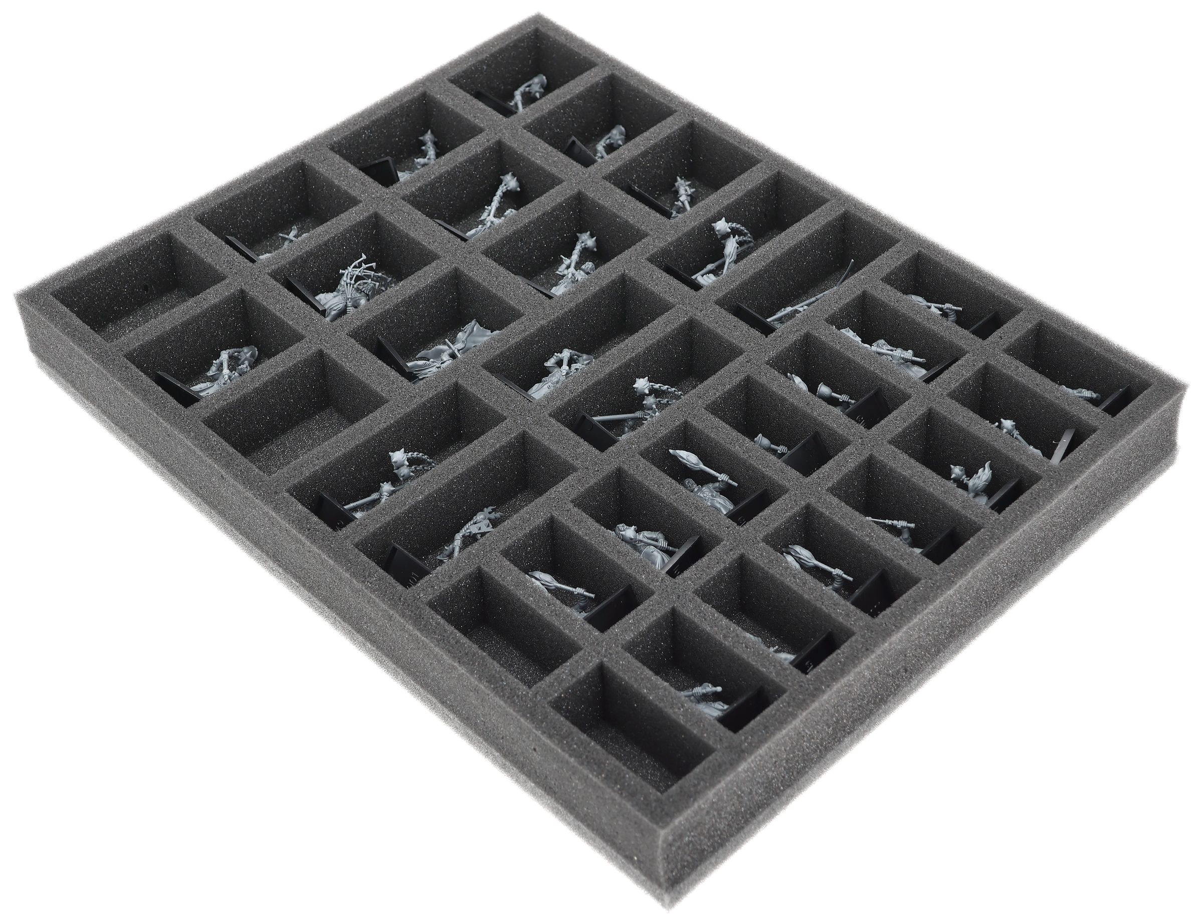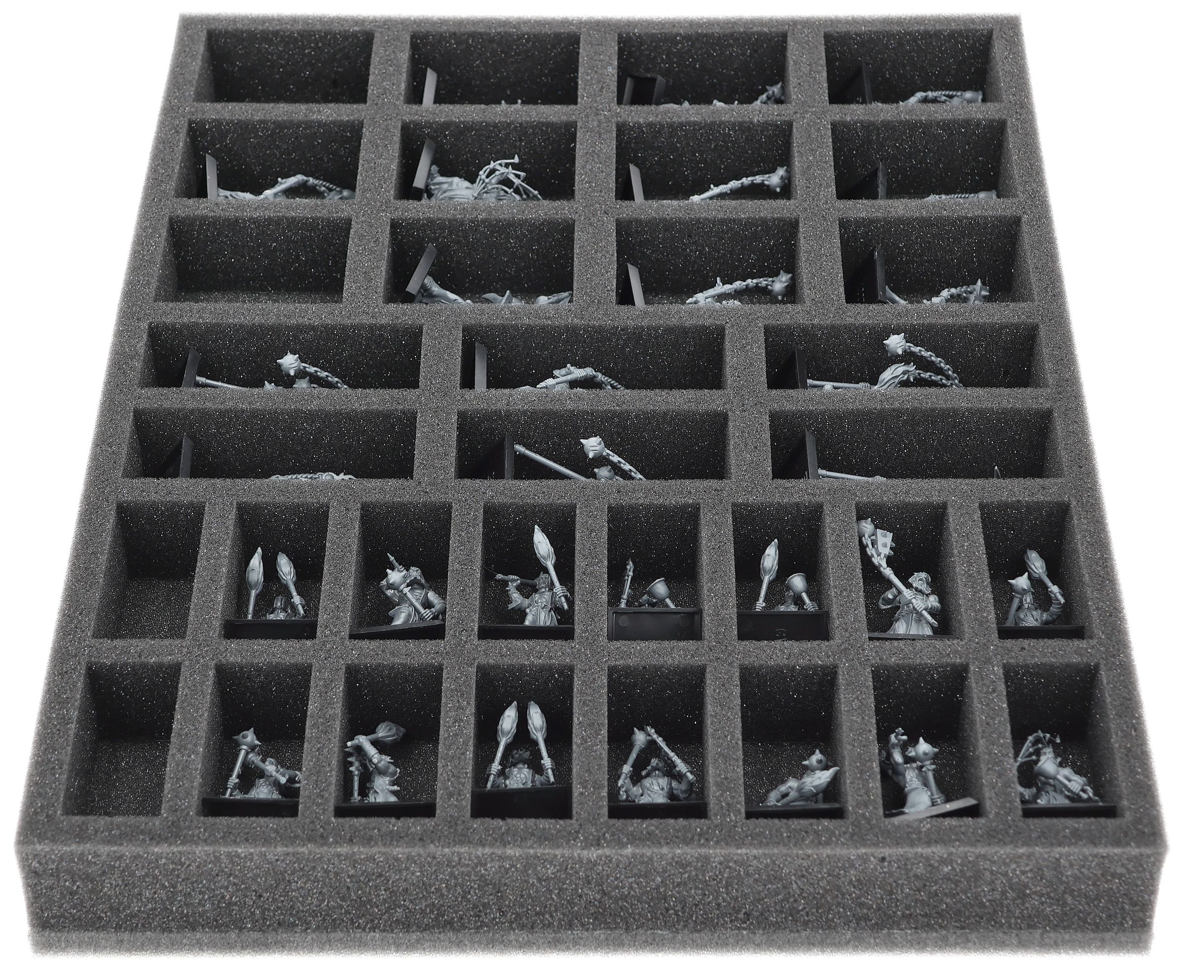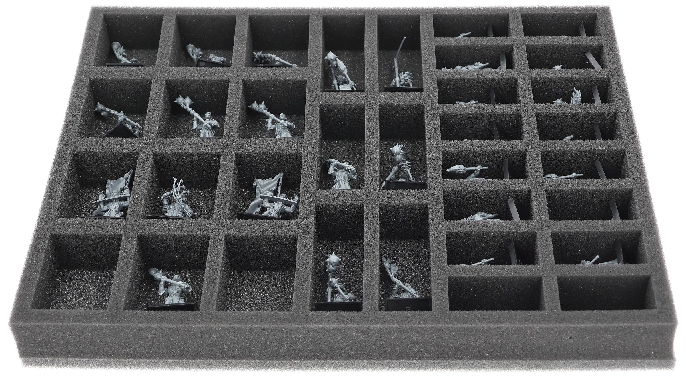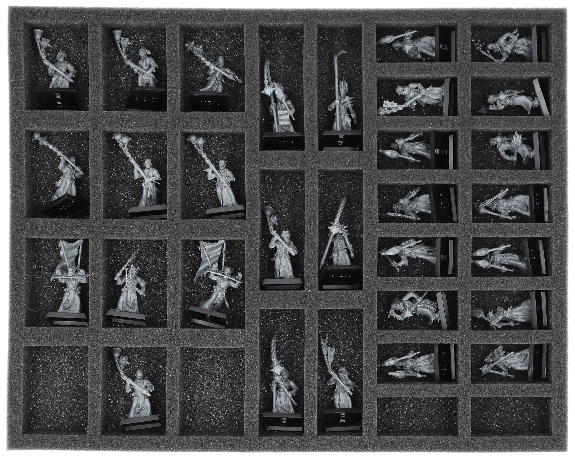 Auf dieser Feldherr Schaumstoffeinlage hast du Platz für bis zu 34 Miniaturen deiner Armee. Das Insert eignet sich zum Beispiel besonders gut zum Aufbewahren der Flagellanten und Modellen mit ähnlichen Abmessungen.