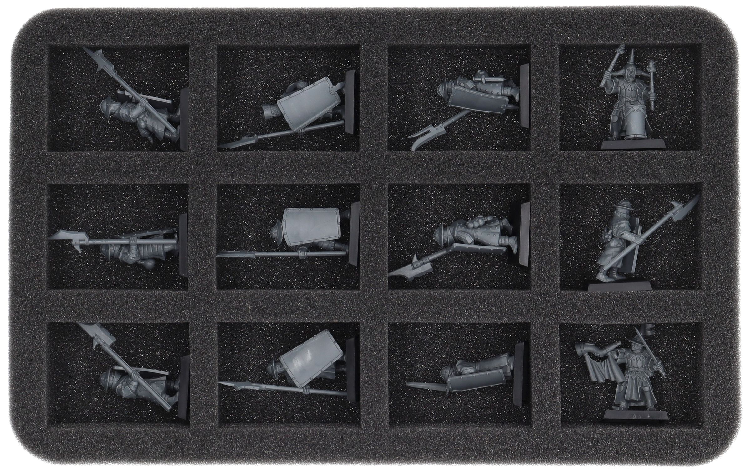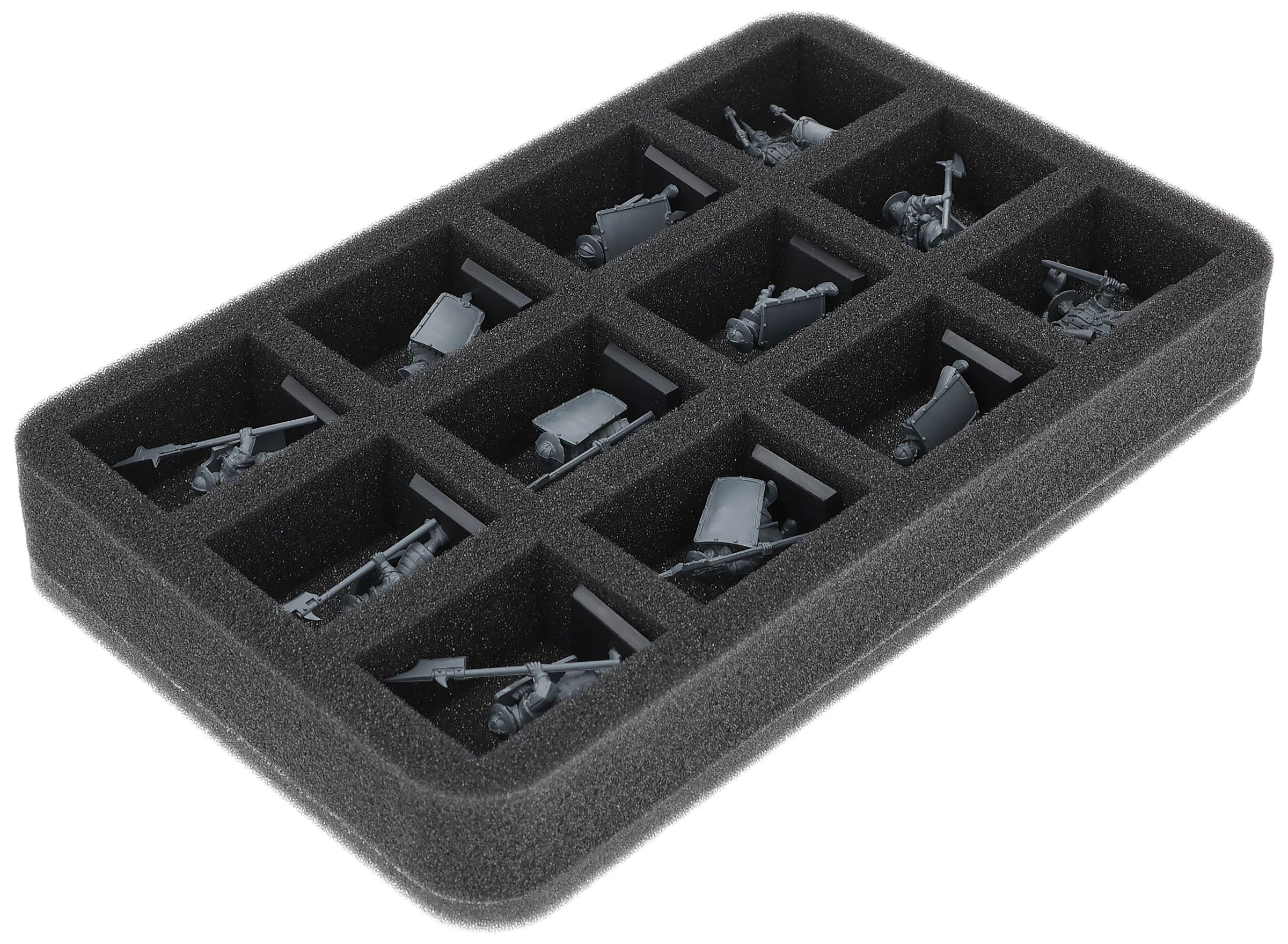 Auf dieser Feldherr Schaumstoffeinlage hast du Platz für bis zu 12 Miniaturen deiner Armee. Das Insert eignet sich zum Beispiel besonders gut zum Aufbewahren von Infanterie und Modellen mit ähnlichen Abmessungen.