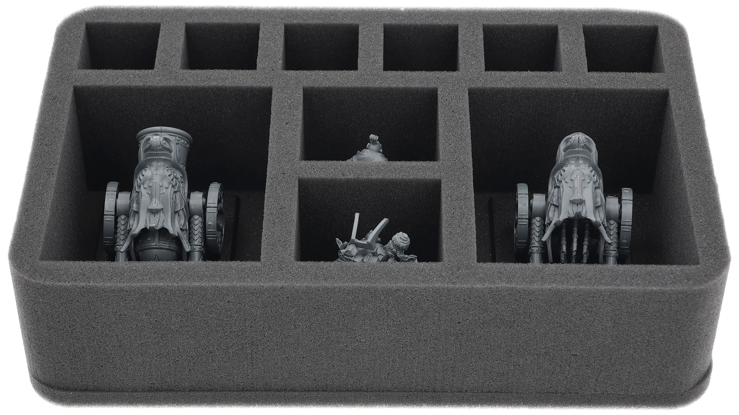 Auf dieser Feldherr Schaumstoffeinlage hast du Platz für bis zu 10 Miniaturen deiner Armee. Das Insert eignet sich zum Beispiel besonders gut zum Aufbewahren der Jadekrieger, Cathayanische Großkanone, Jadelanzenreiter und Modellen mit ähnlichen Abmessungen.