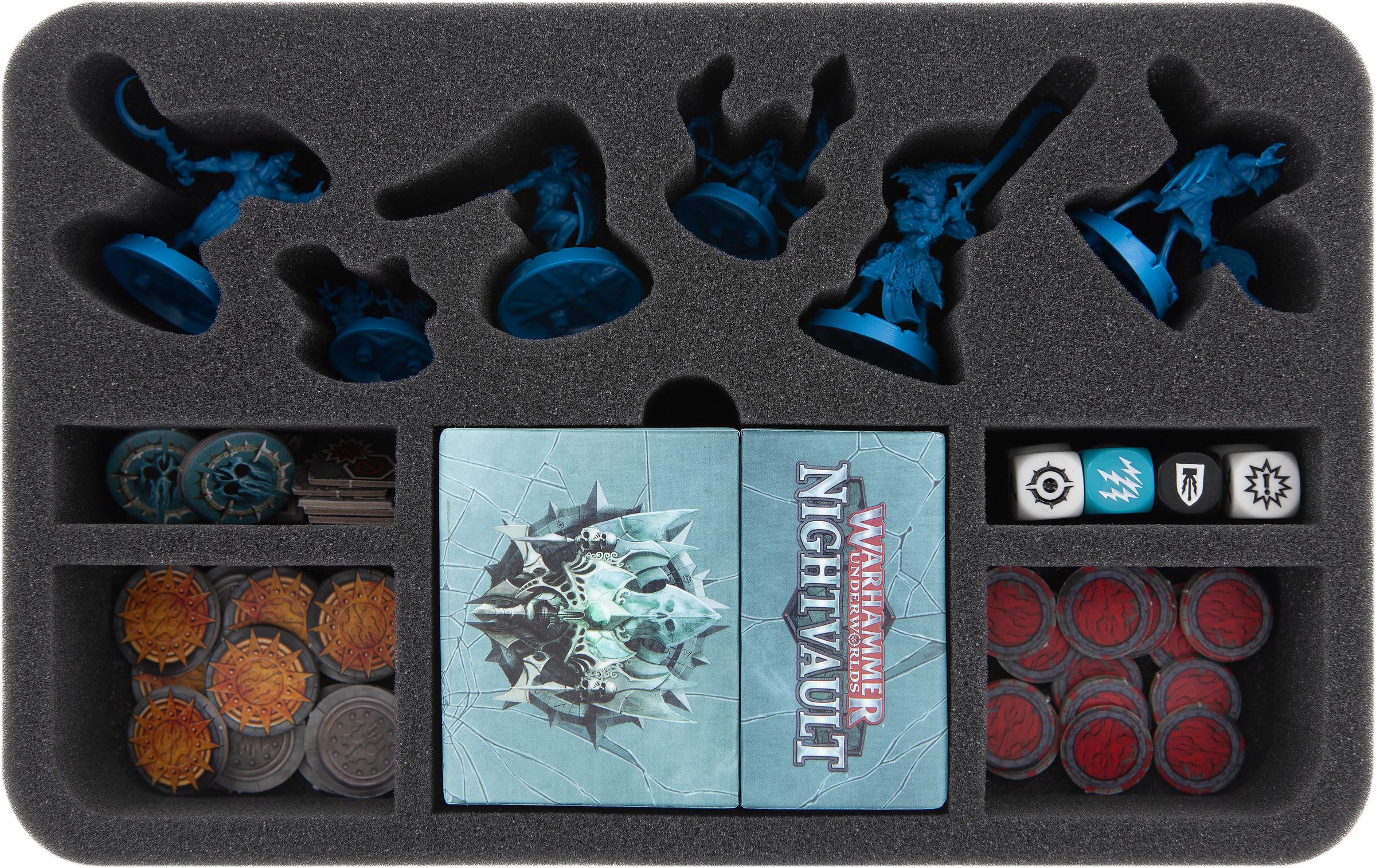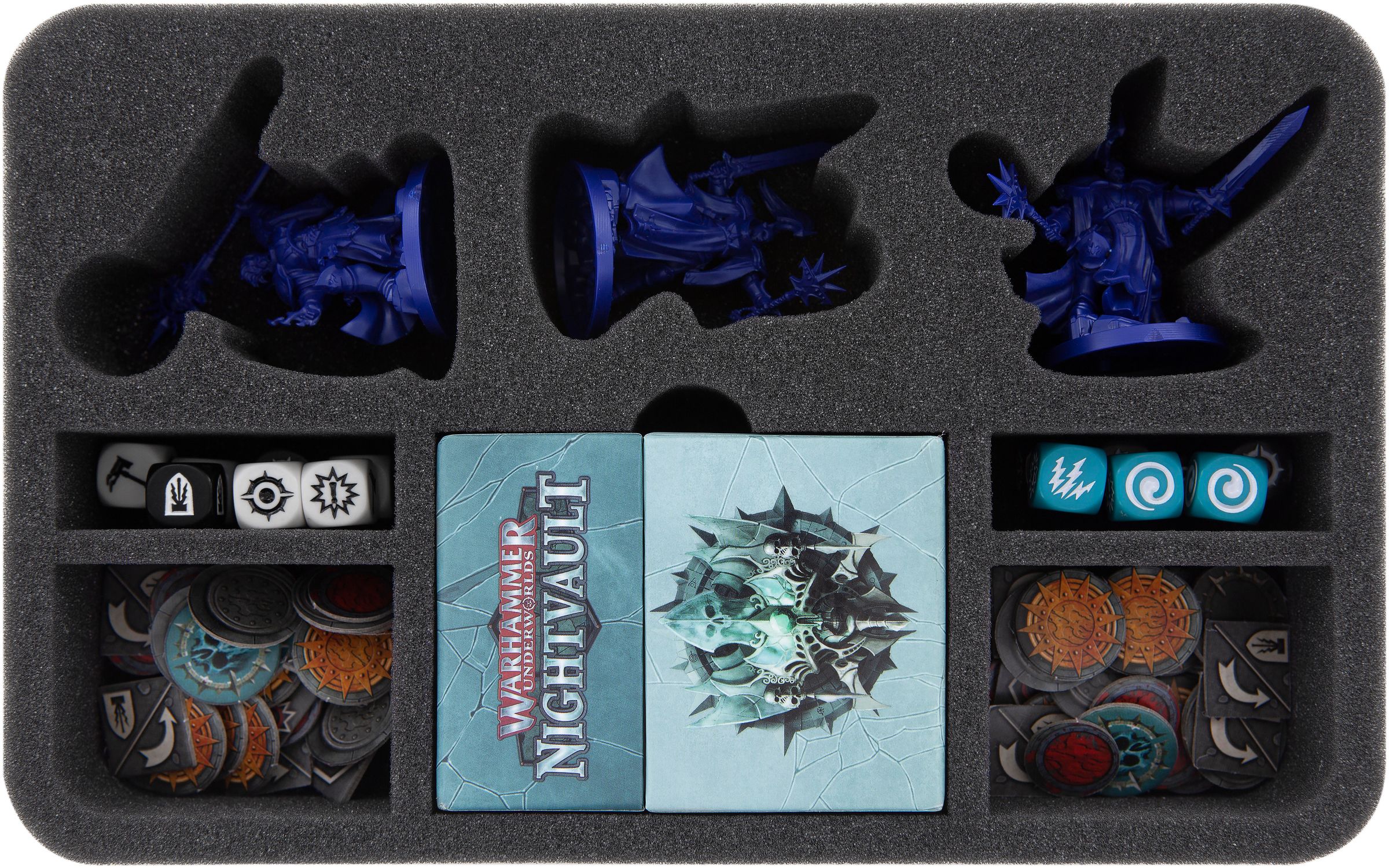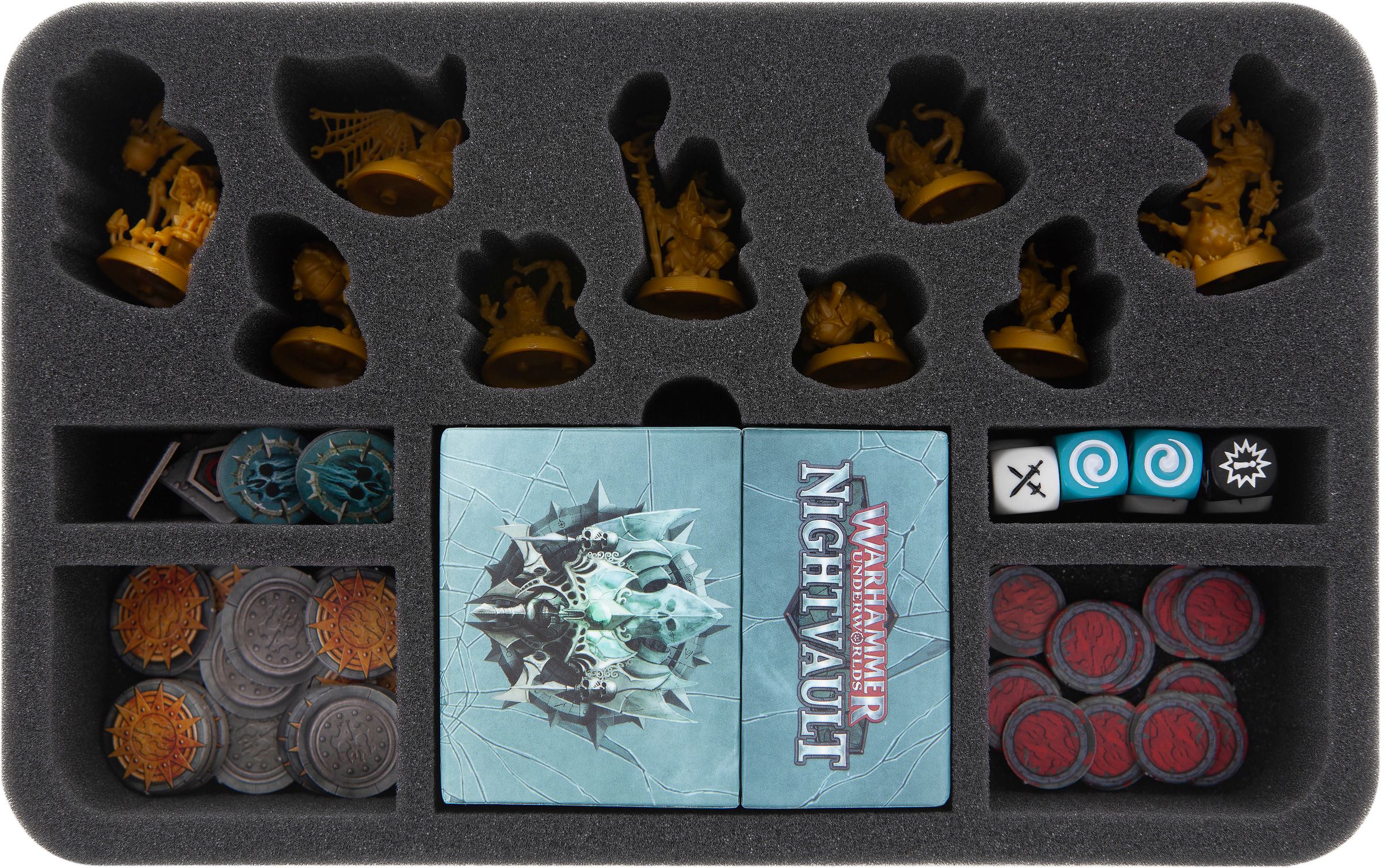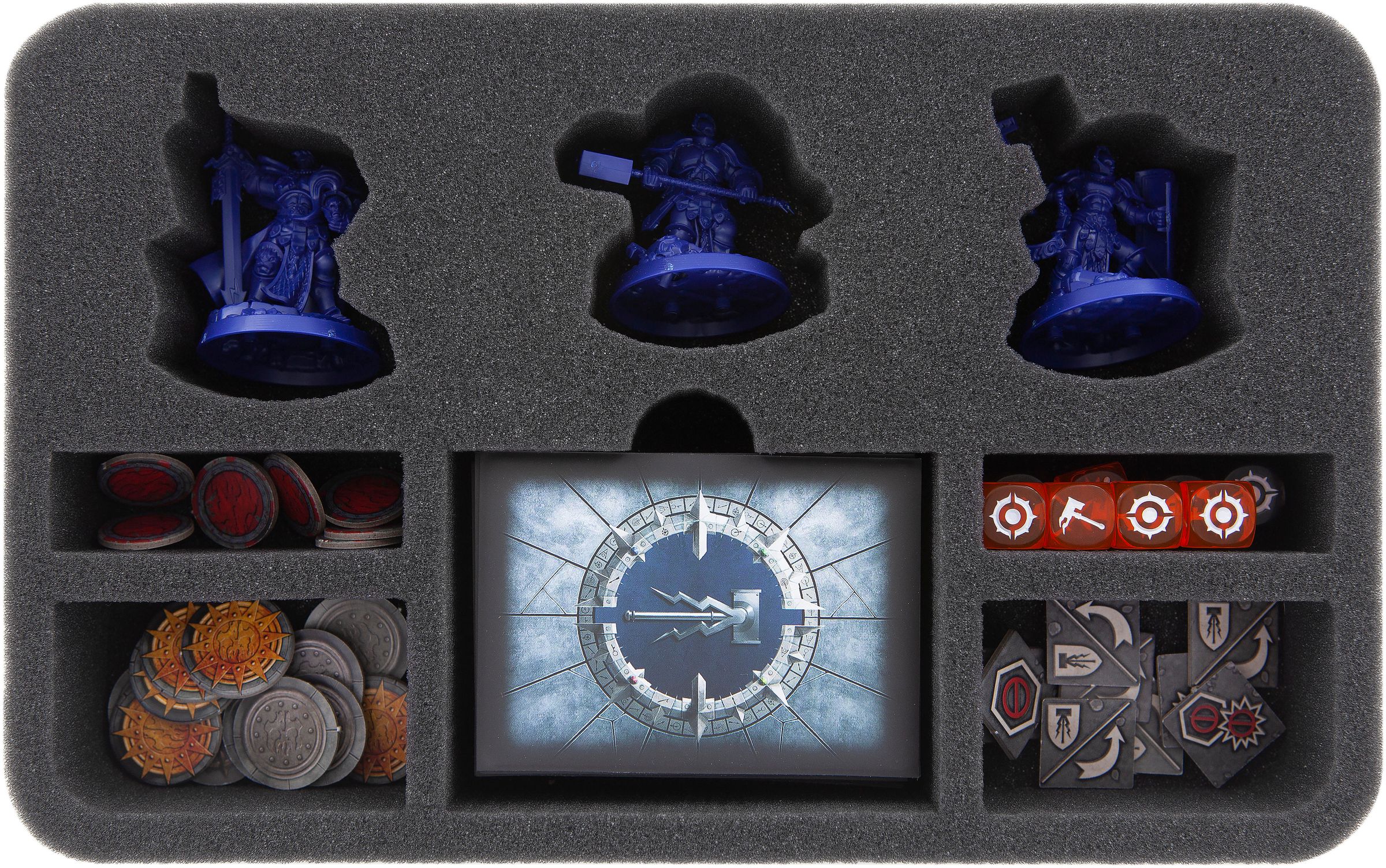 Von Averon Sturmvater, über Sanson Weitläufer bis hin zu Zarbags wuselnder Goblin-Schar, jede Truppe bekommt eine maßgeschneiderte Feldherr Schaumstoffeinlage.