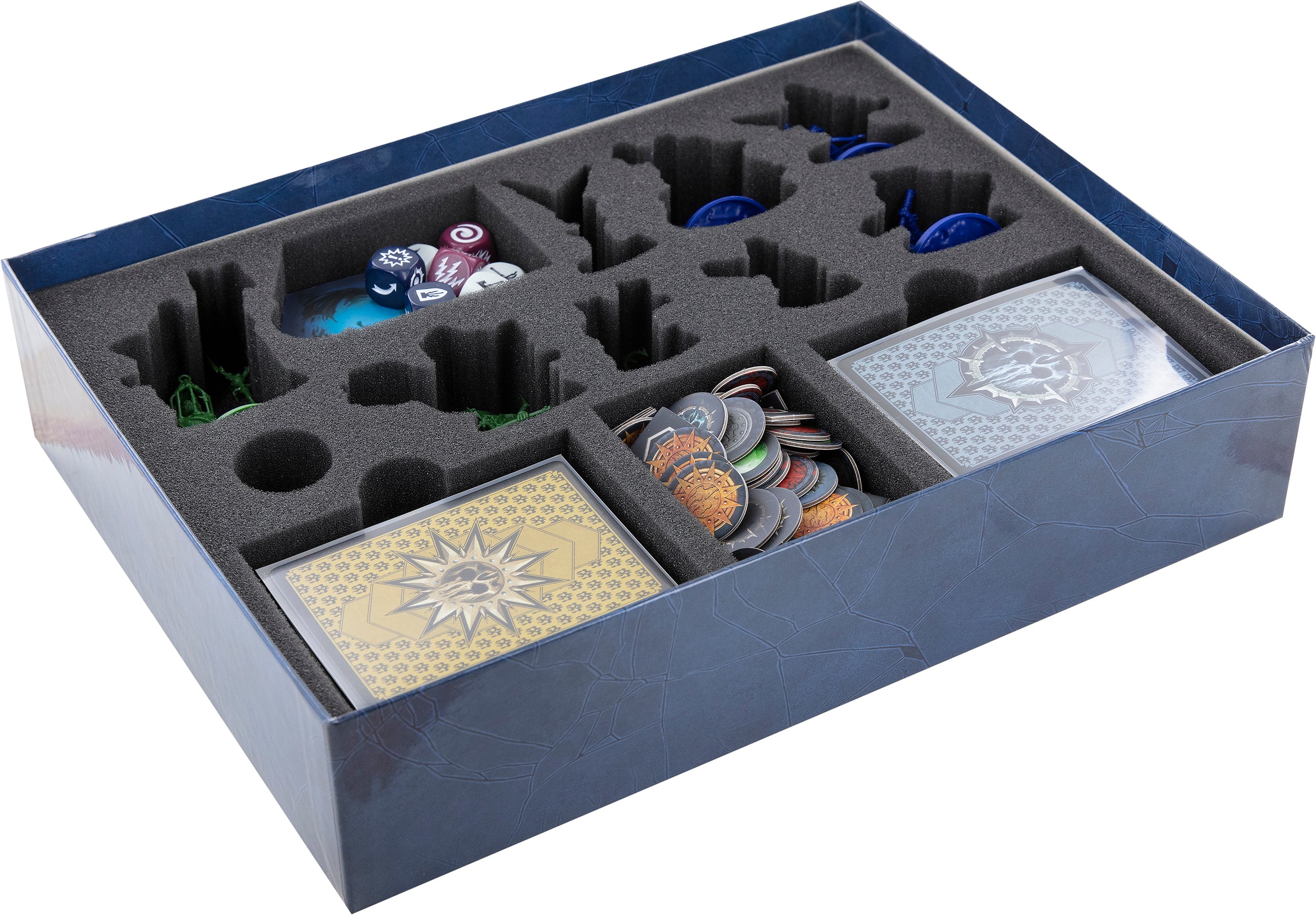 Bevor es unter das Meer geht, müssen andere Gefahren überstanden werden. Abgebrochene Gliedmaßen, verlorene Token, geknickte Karten sind nur einige der Gefahren, die in der Dunkelheit deiner Brettspielbox lauern. Damit du alle Inhalte des Harrowdeep-Grundspiels sicher und ordentlich aufbewahren kannst, haben wir das passende Schaumstoff-Set für dich. Damit bist du bestens für deine Expedition in die Dunkelheit gewappnet.