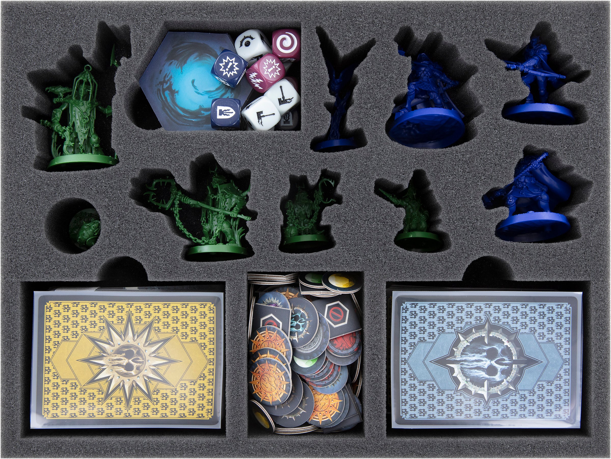 - Die Schaumstoffeinlage passt exakt in die originale Brettspielbox von „Warhammer Underworlds: Harrowdeep“.